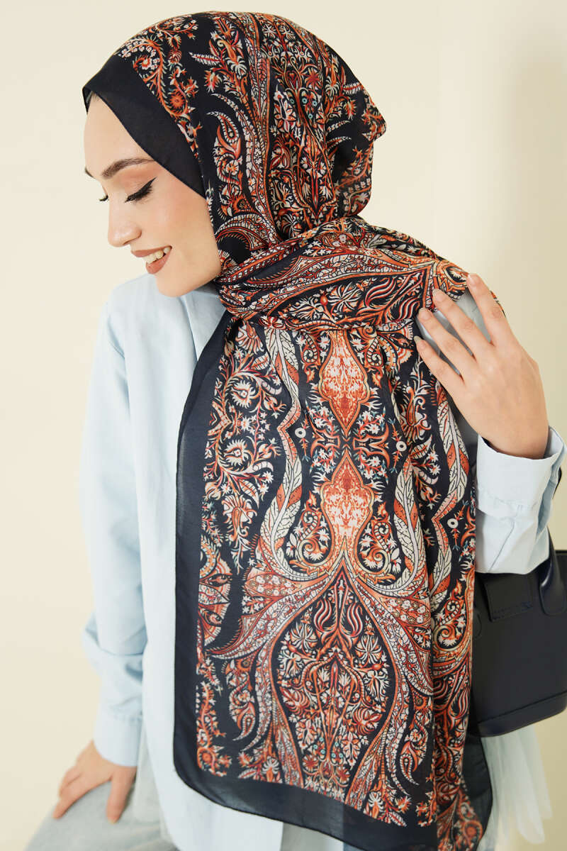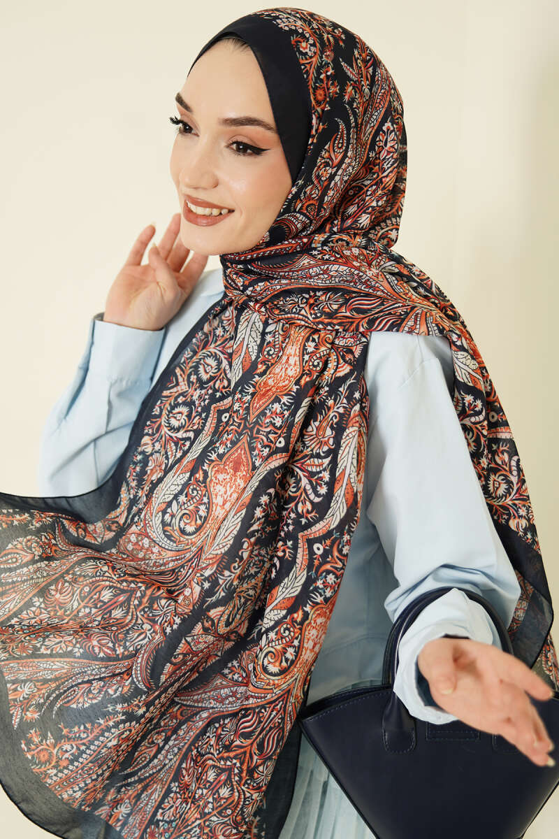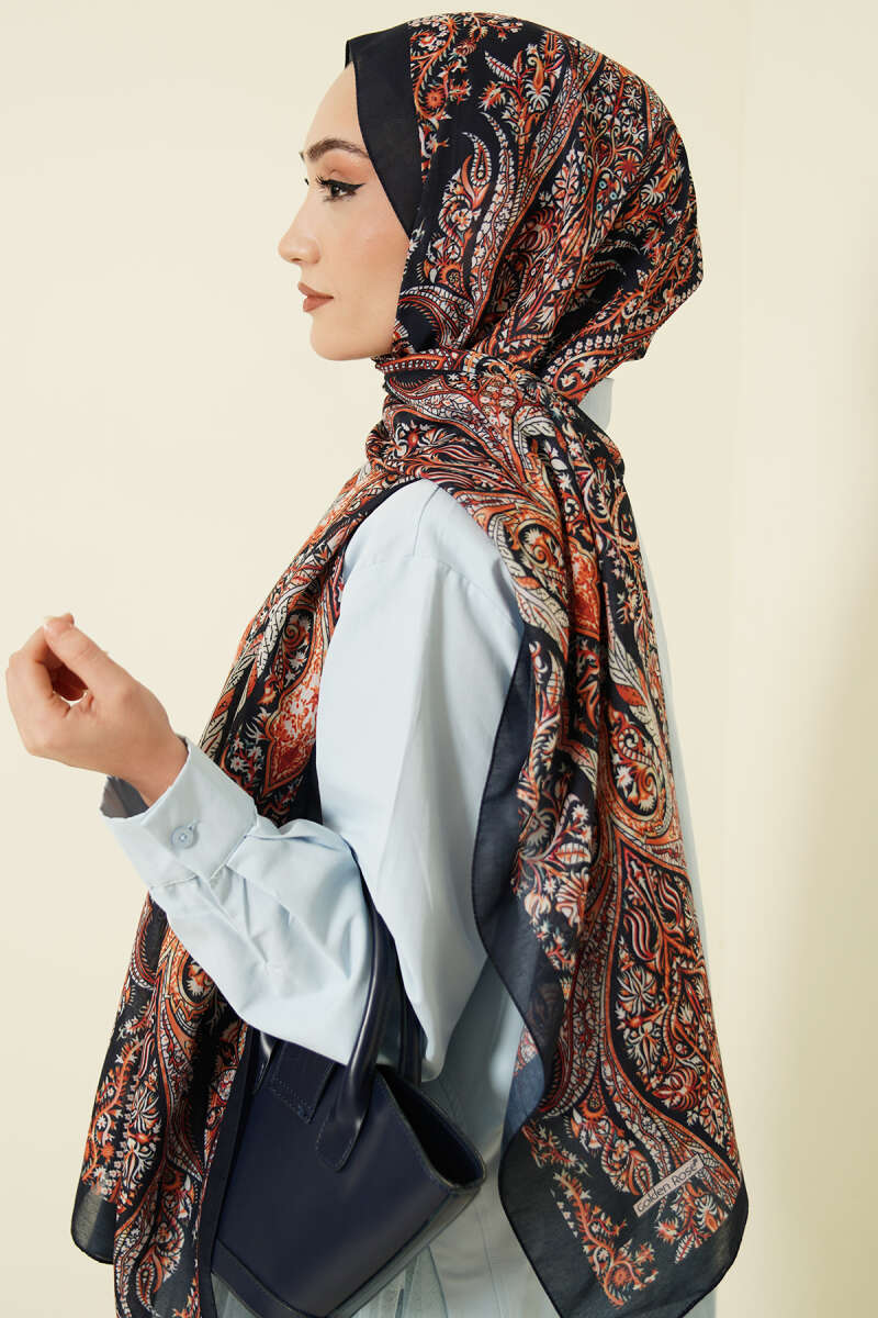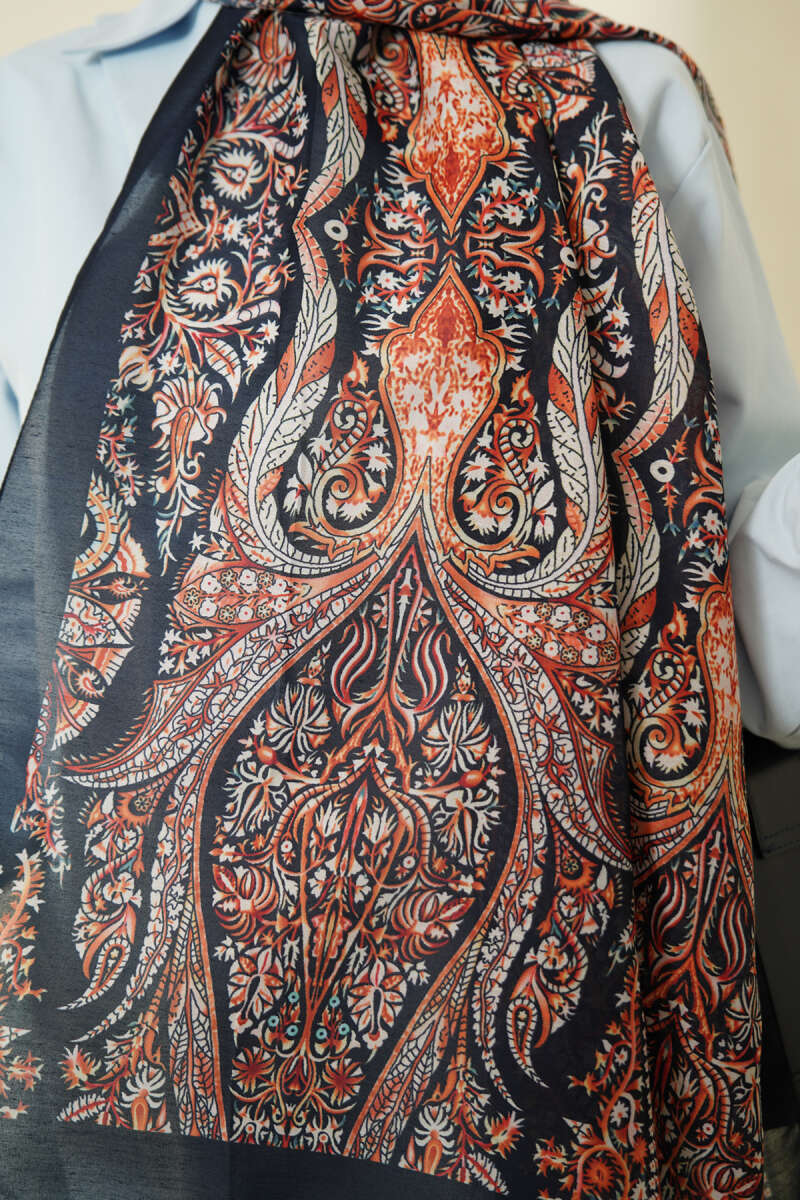 Boteh Desen Şal Lacivert