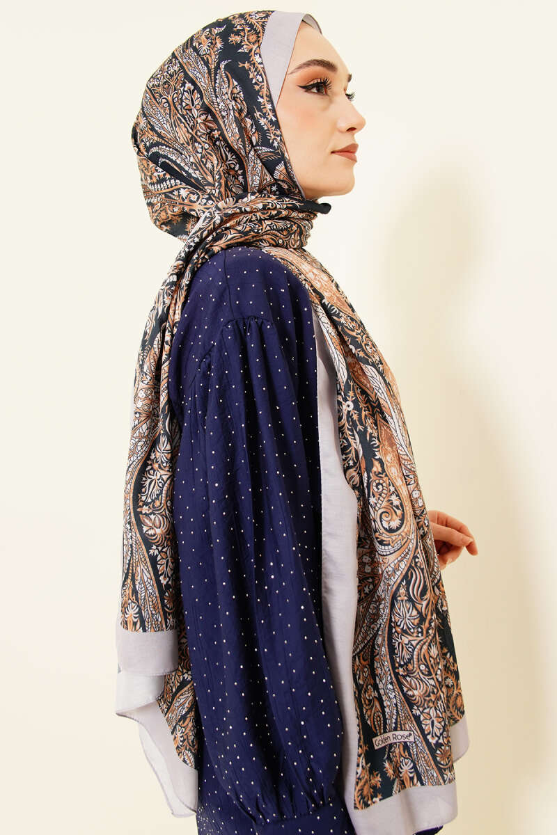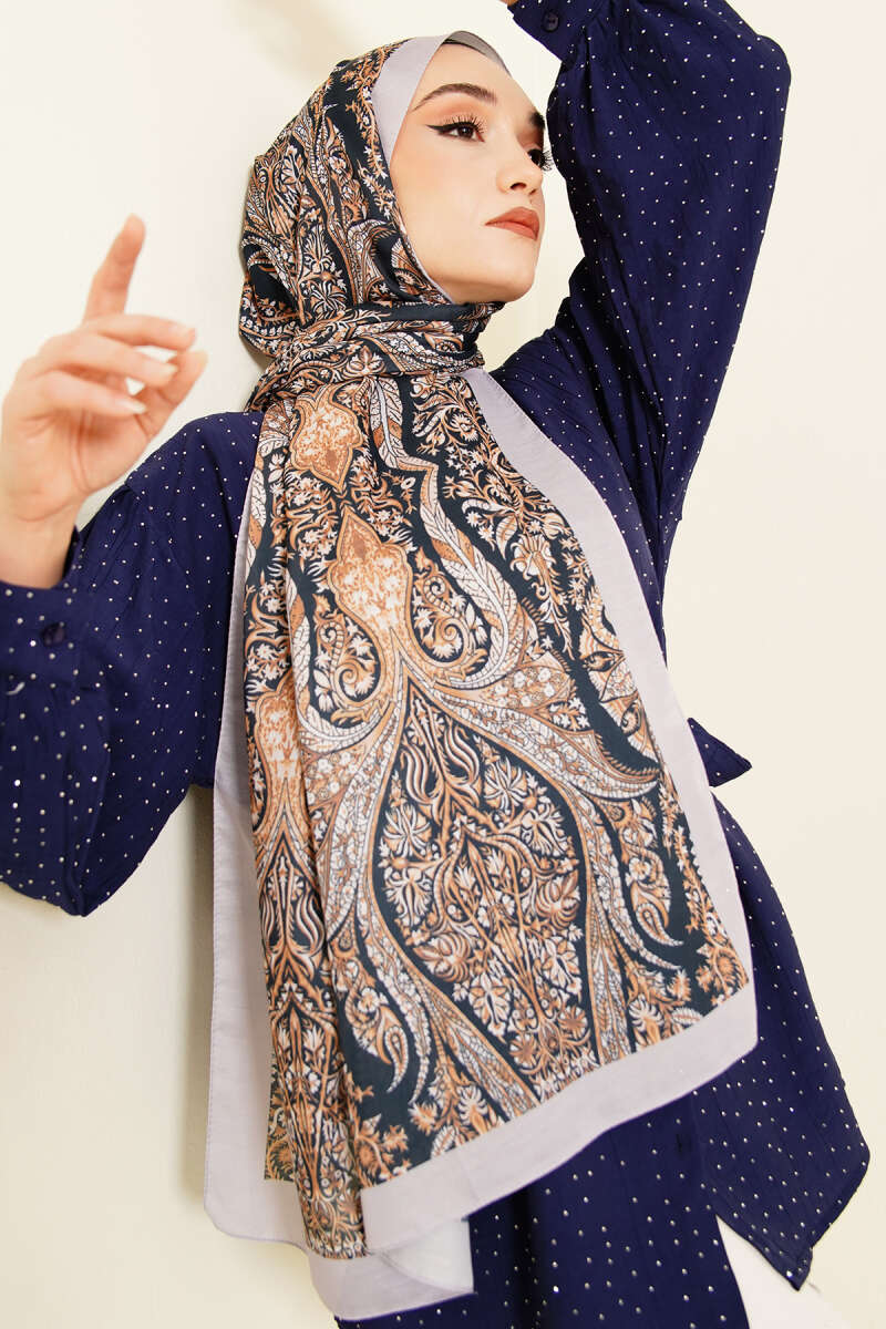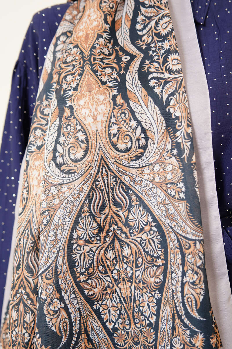 Boteh Desen Şal Lacivert Gri