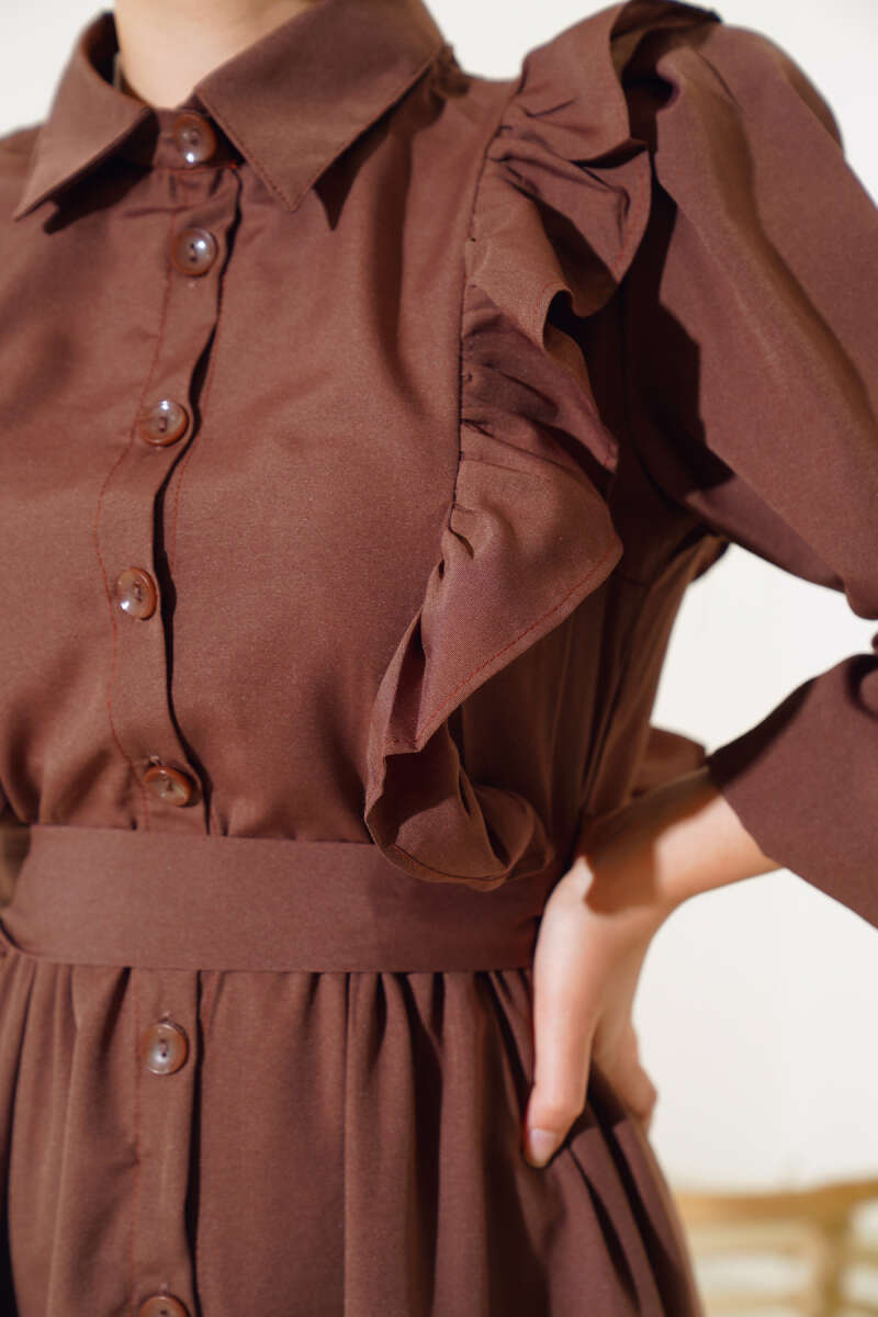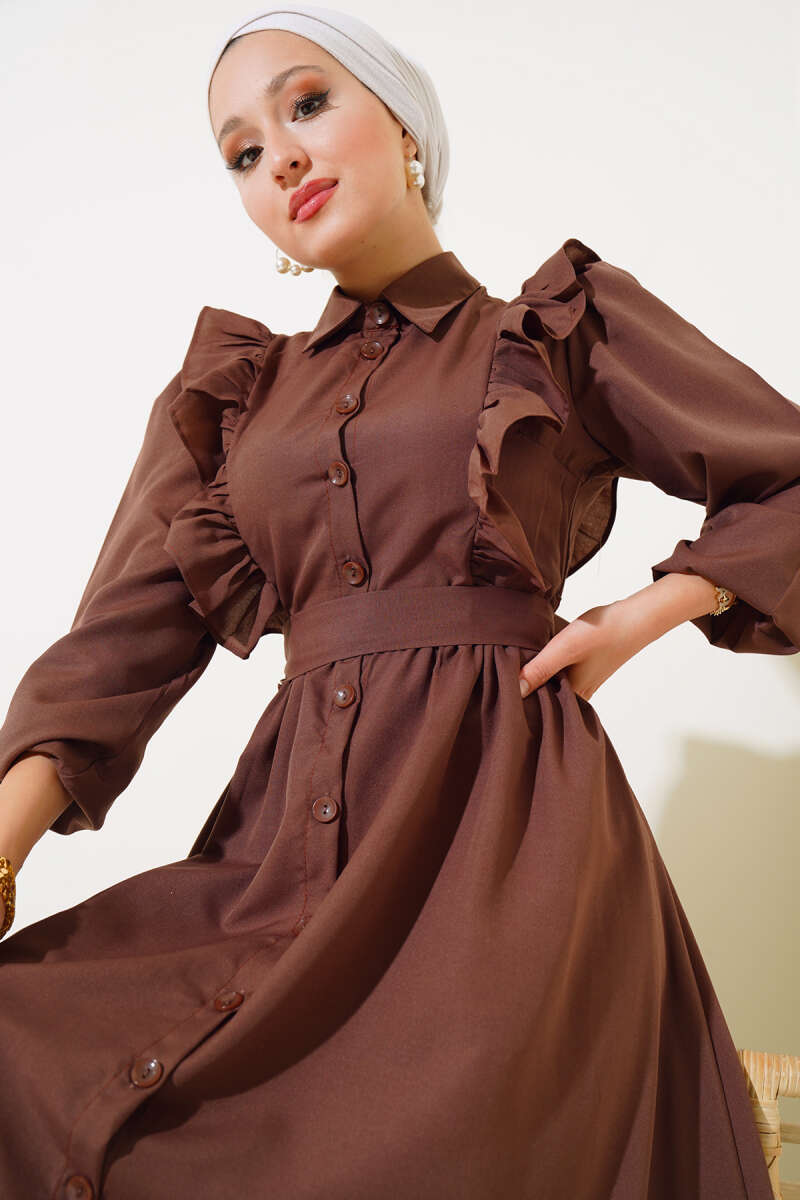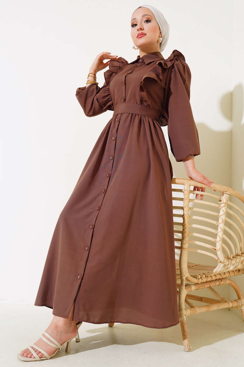 Boydan Düğmeli Tencel Kot Elbise Füme