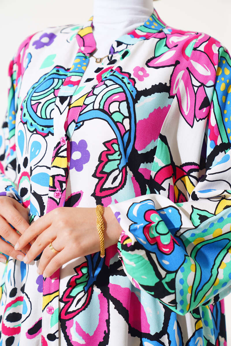 Boy Düğmeli Salaş Desenli Elbise Yeşil