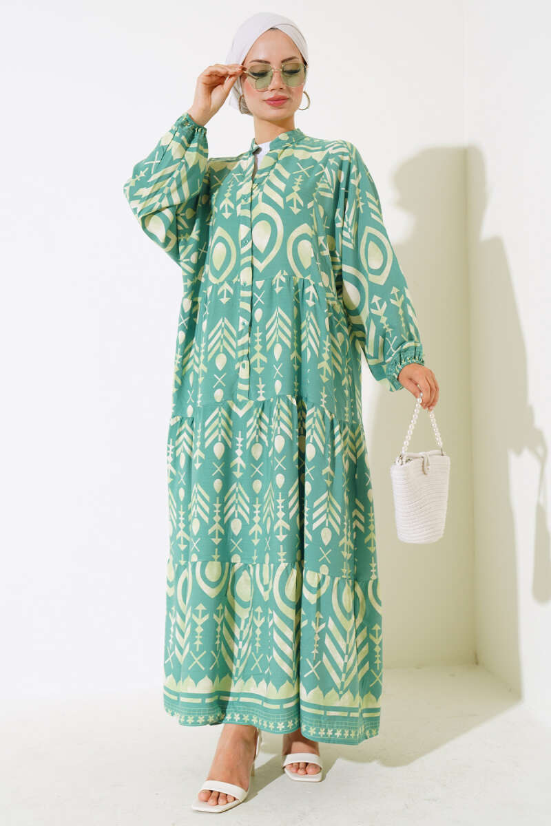 Çift İp Kuşaklı Ekoseli Elbise Bej