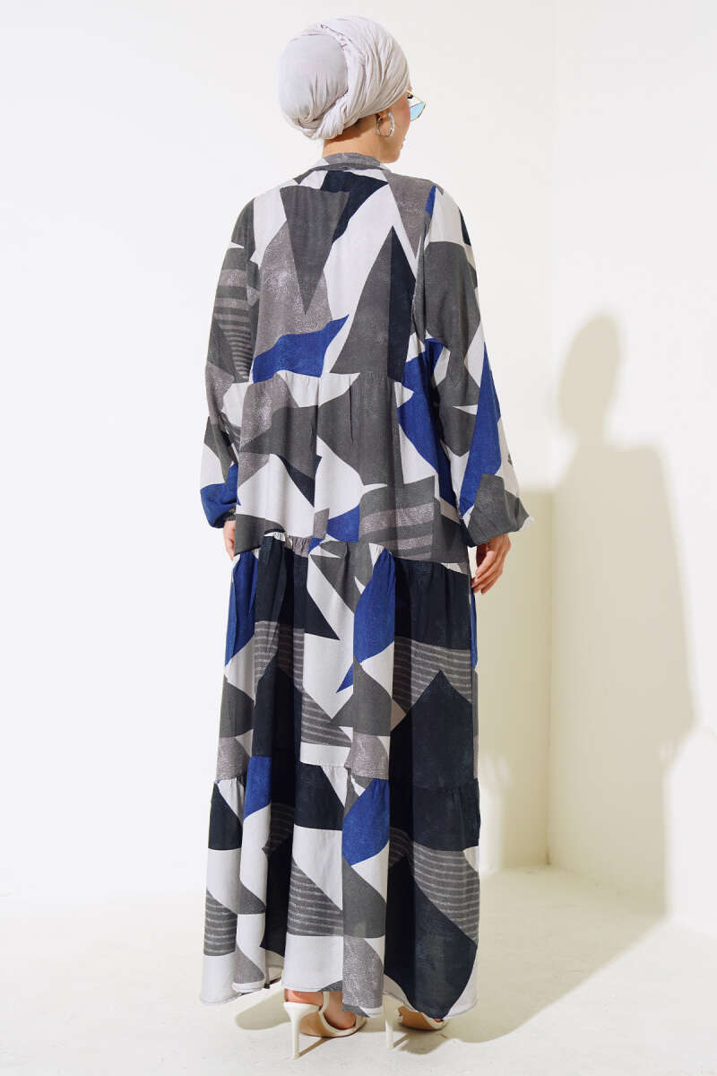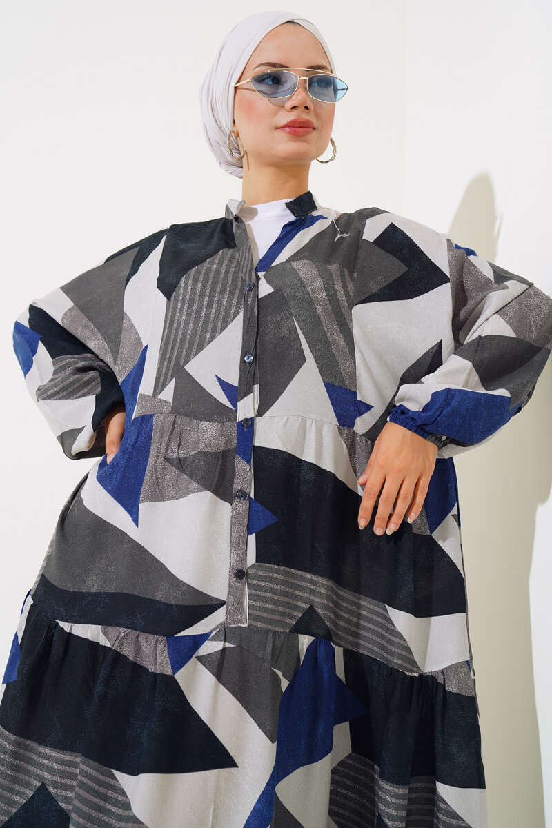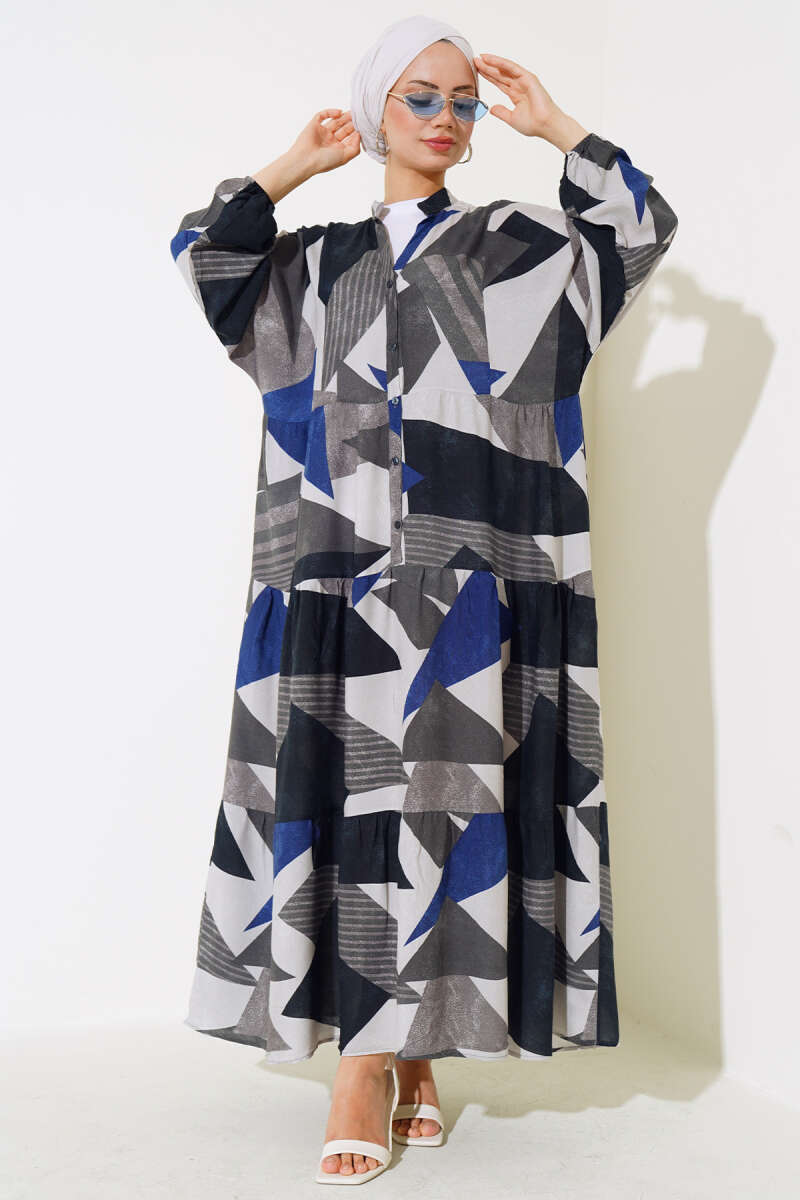 Boy Düğmeli Salaş Desenli Elbise Çağla Yeşili