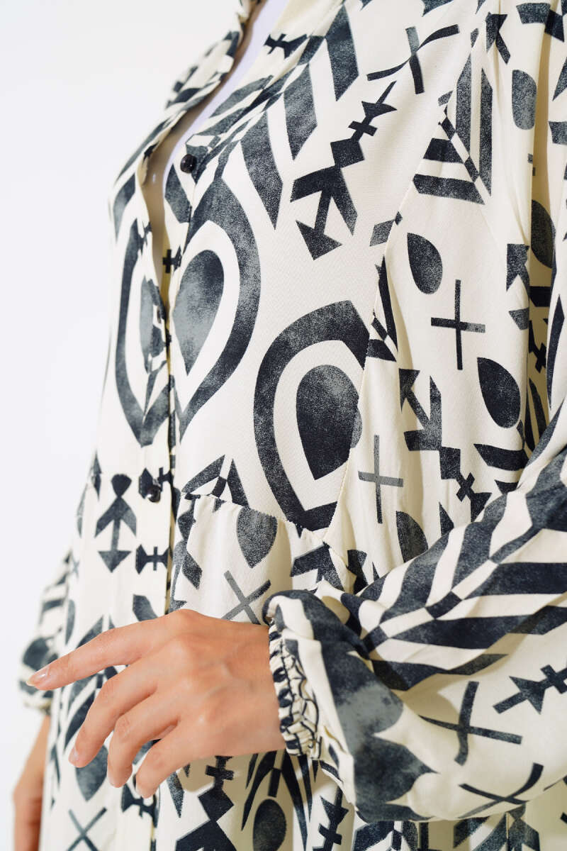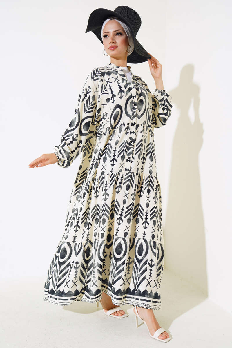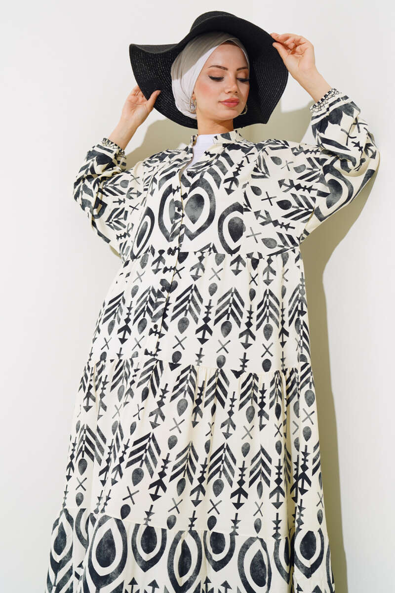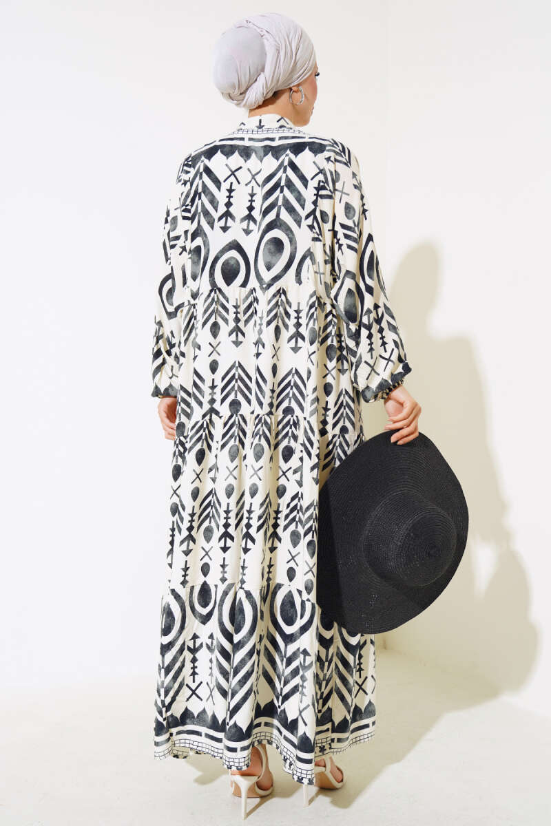 Boy Düğmeli Salaş Desenli Elbise Siyah