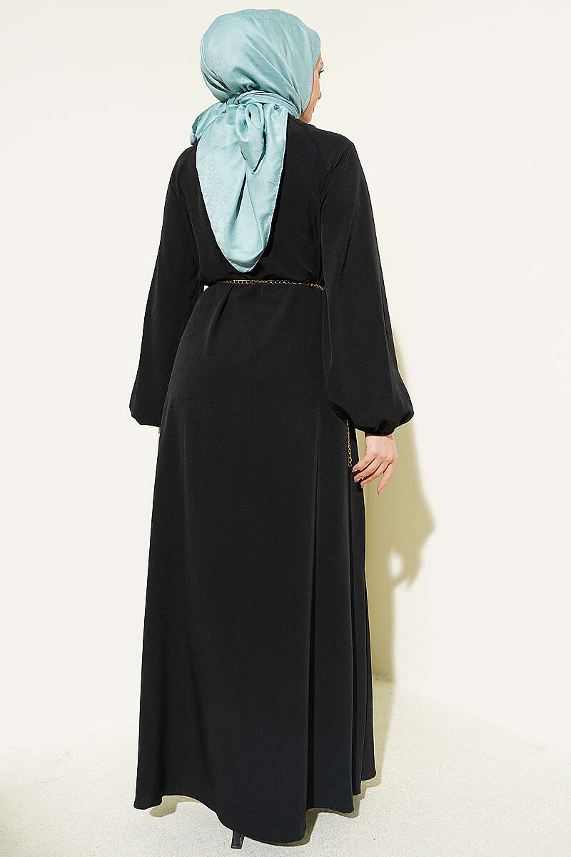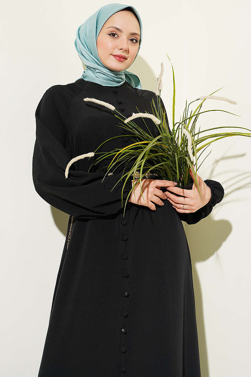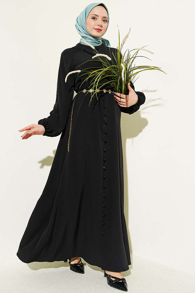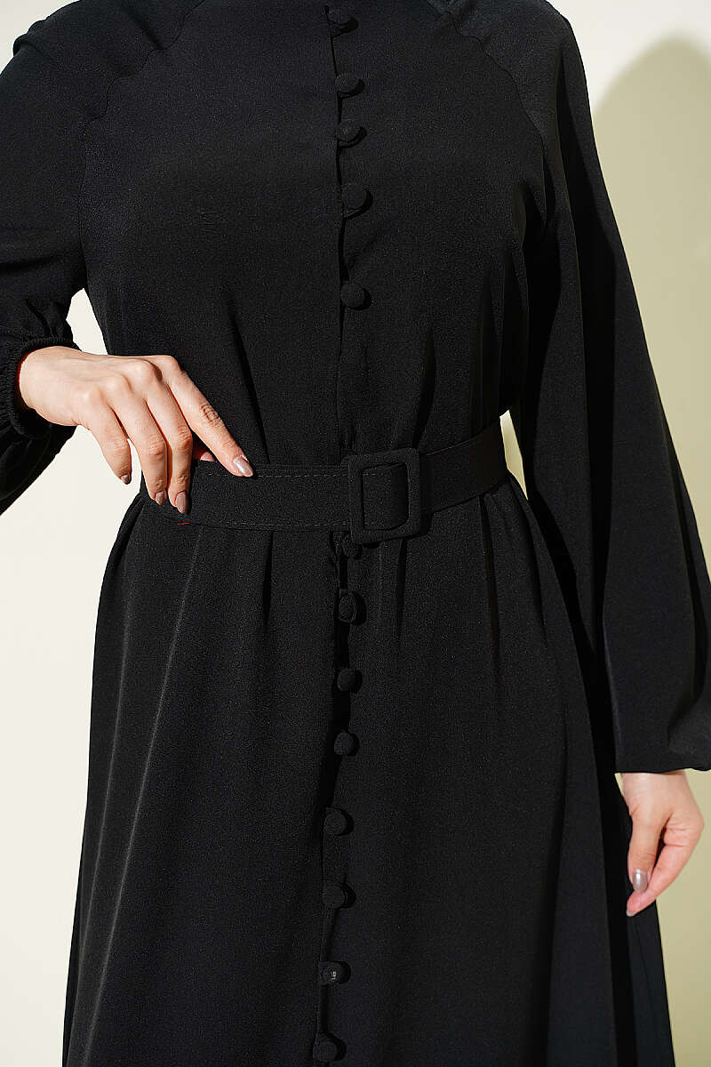 Boydan Brit Düğmeli Kemerli Elbise Siyah