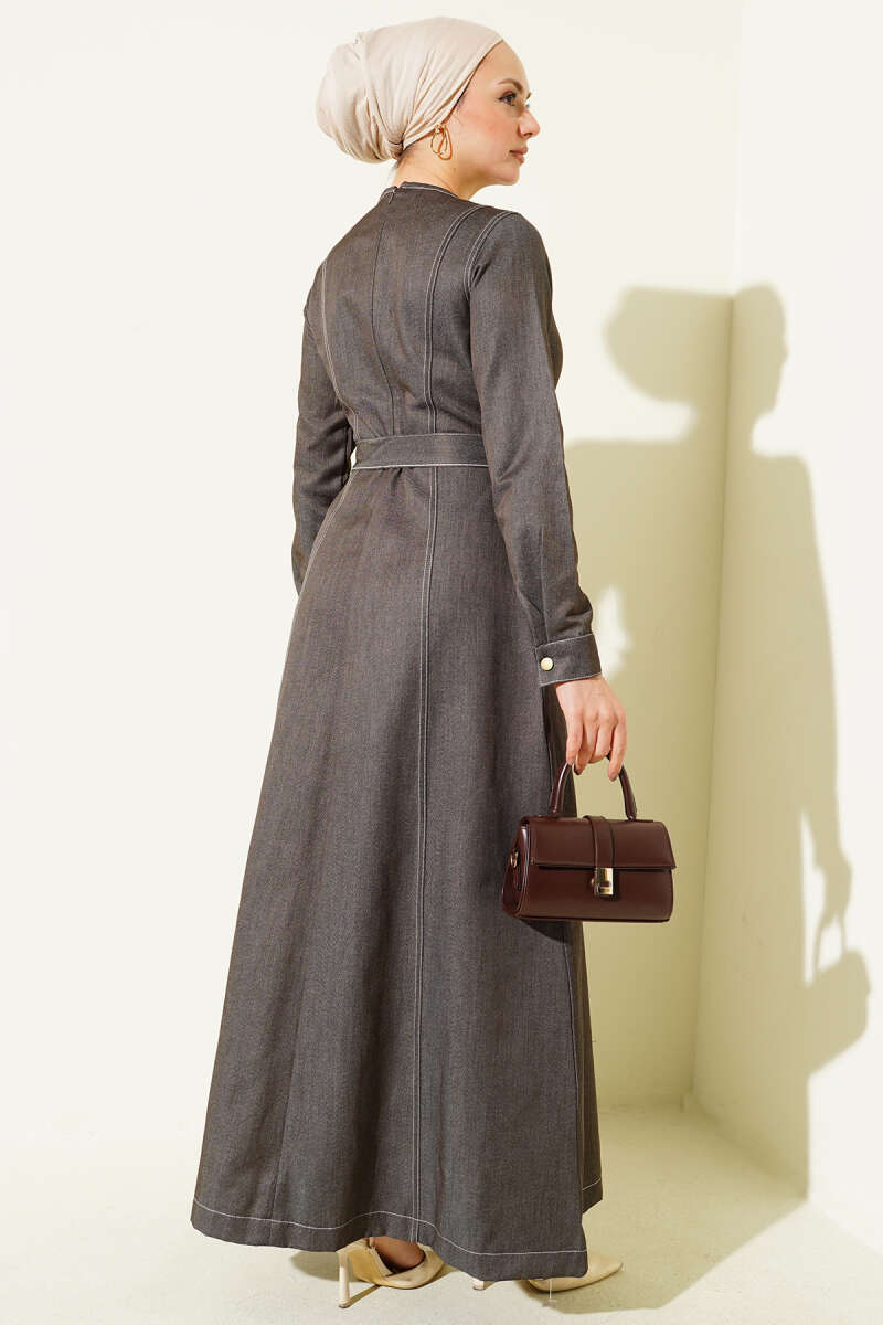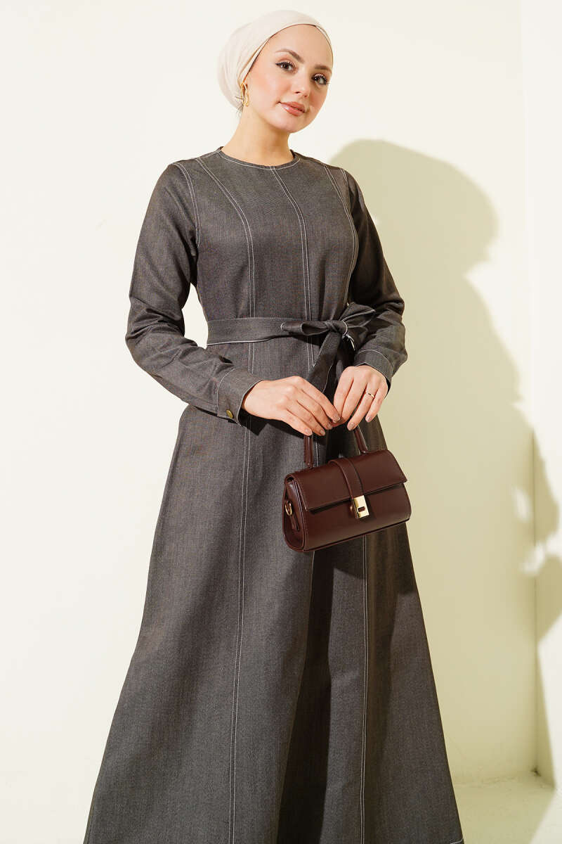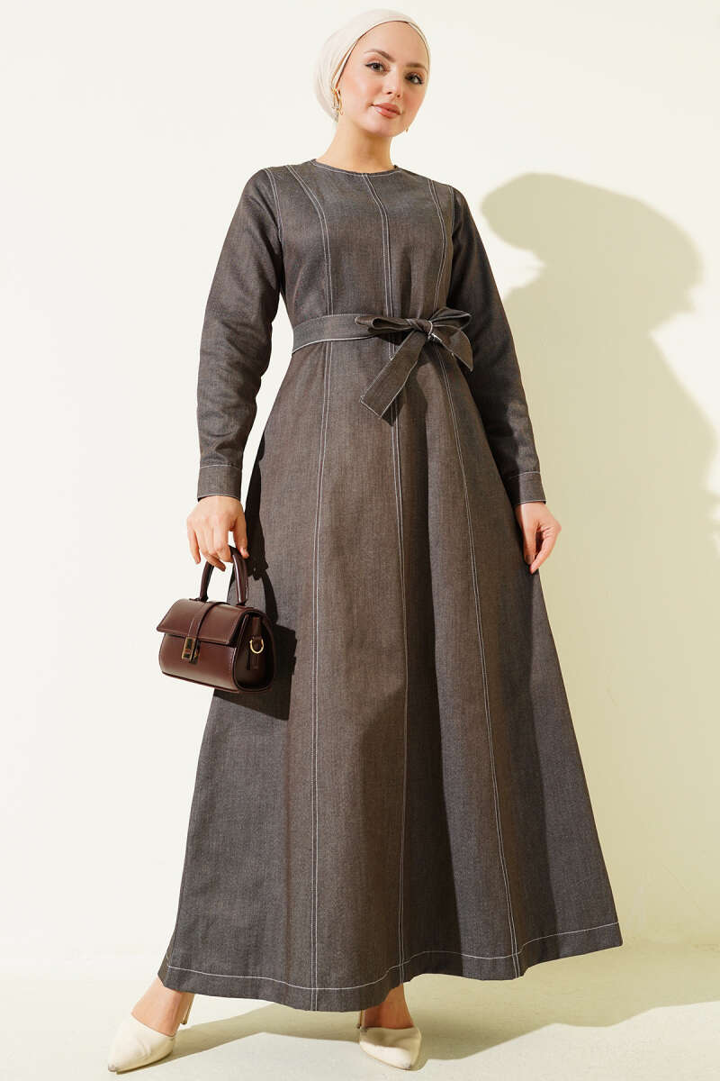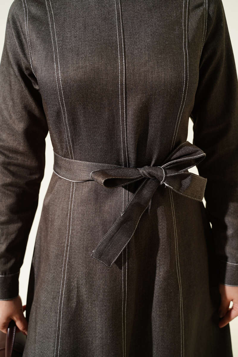 Boydan Dikiş Detaylı Kot Elbise Kot