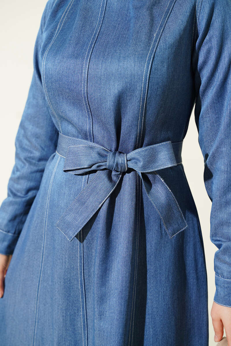 Metal Düğmeli Kolsuz Kot Elbise Koyu Mavi