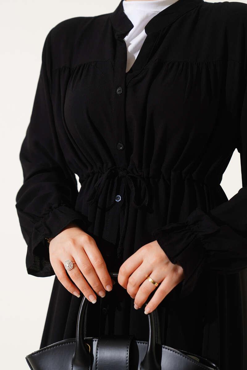 Gömlek Yaka Düğmeli Triko Elbise Siyah