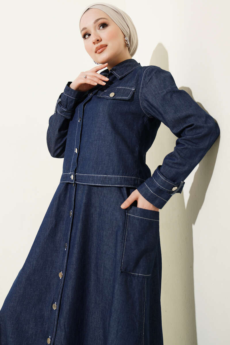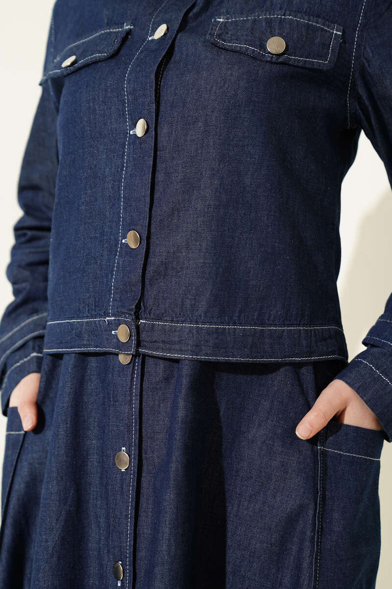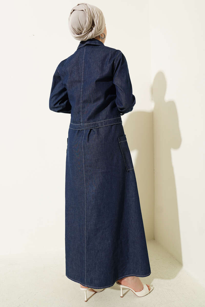 Modern denim dokusuyla hem spor hem de şık bir görünüm sunan bu jile takım, fonksiyonel ve stil sahibi bir kullanım vaat ediyor. Boydan düğme detayları ve geniş cep tasarımlarıyla dinamik bir karakter kazanan bu parça, ceket formuyla kombinlerinize sofistike bir yapı ekliyor. Bel kısmındaki dikiş detayı ve aşağıya doğru hafifçe genişleyen etek kesimi, silüetinize zarif bir form kazandırırken günlük hareket özgürlüğünüzü destekliyor. Kaliteli kumaş yapısı sayesinde uzun ömürlü bir kullanım sunan bu ikili tasarım, zamansız şıklığı her mevsim gardırobunuza taşıyor.
