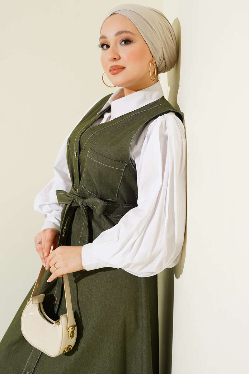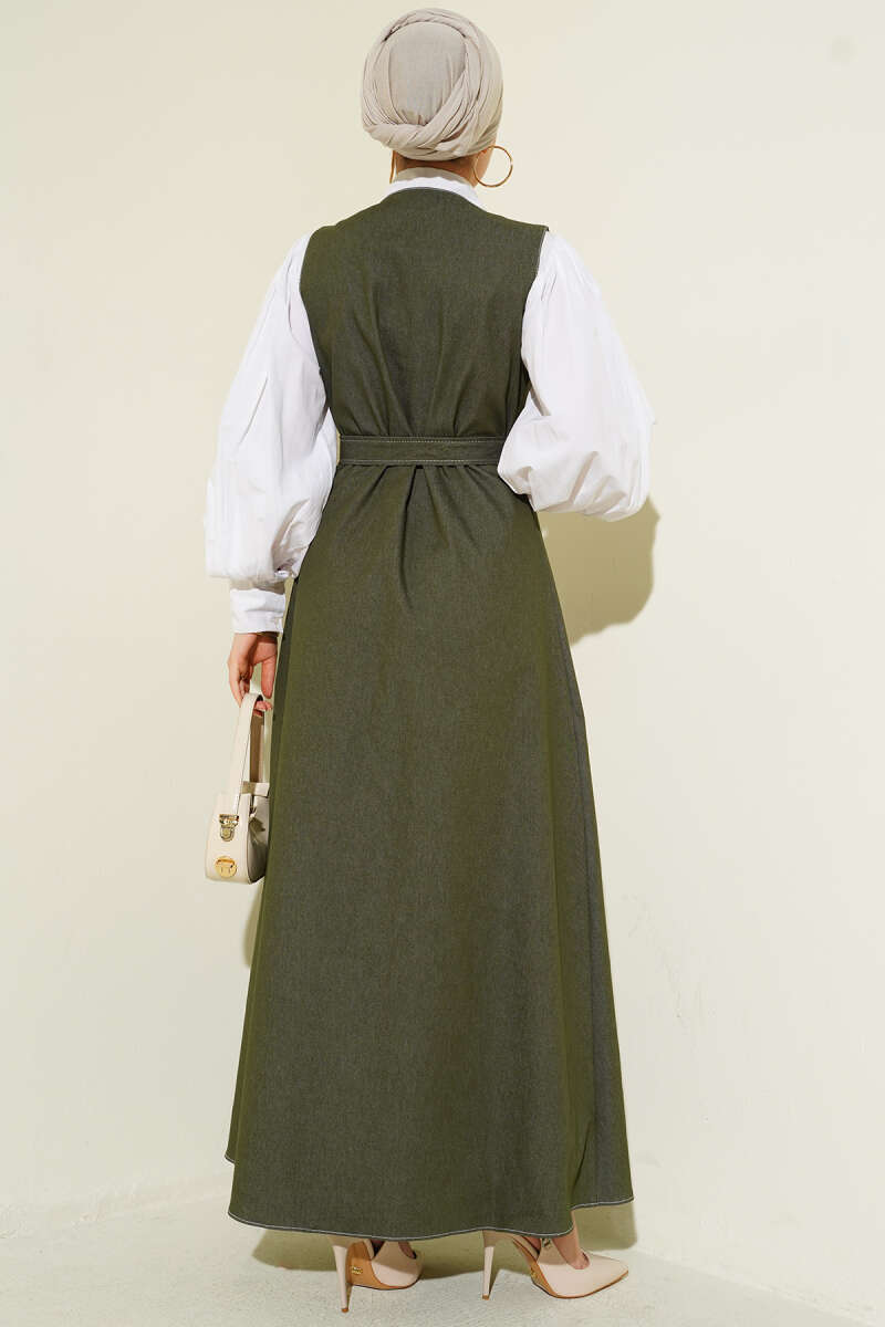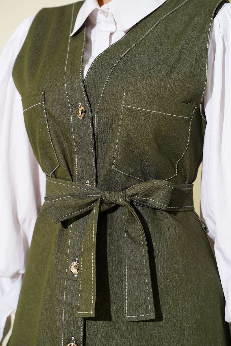 Boydan Düğmeli Çift Cepli Kot Jile Haki