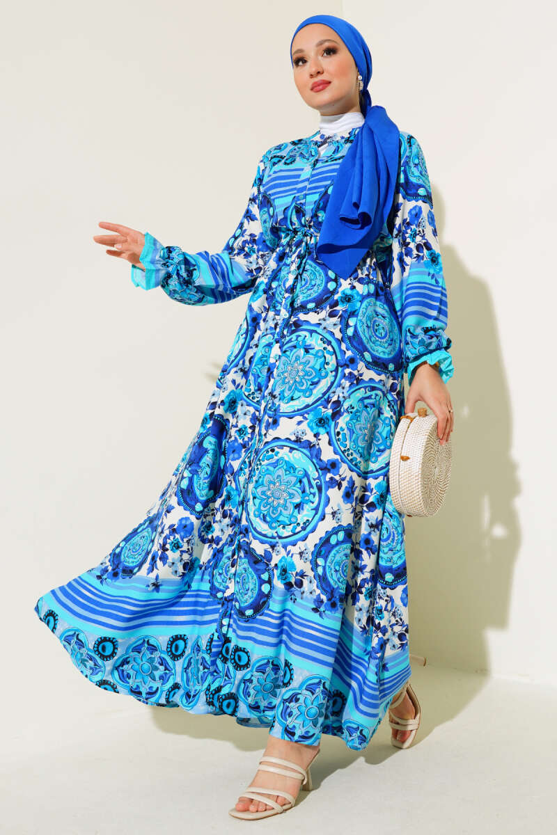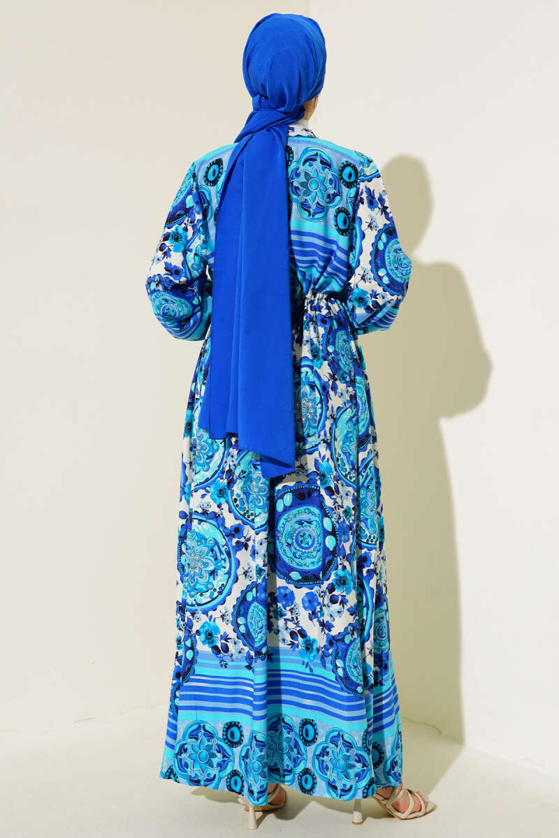 Bilek Bağlamalı Kuşaklı Abiye Elbise Lacivert