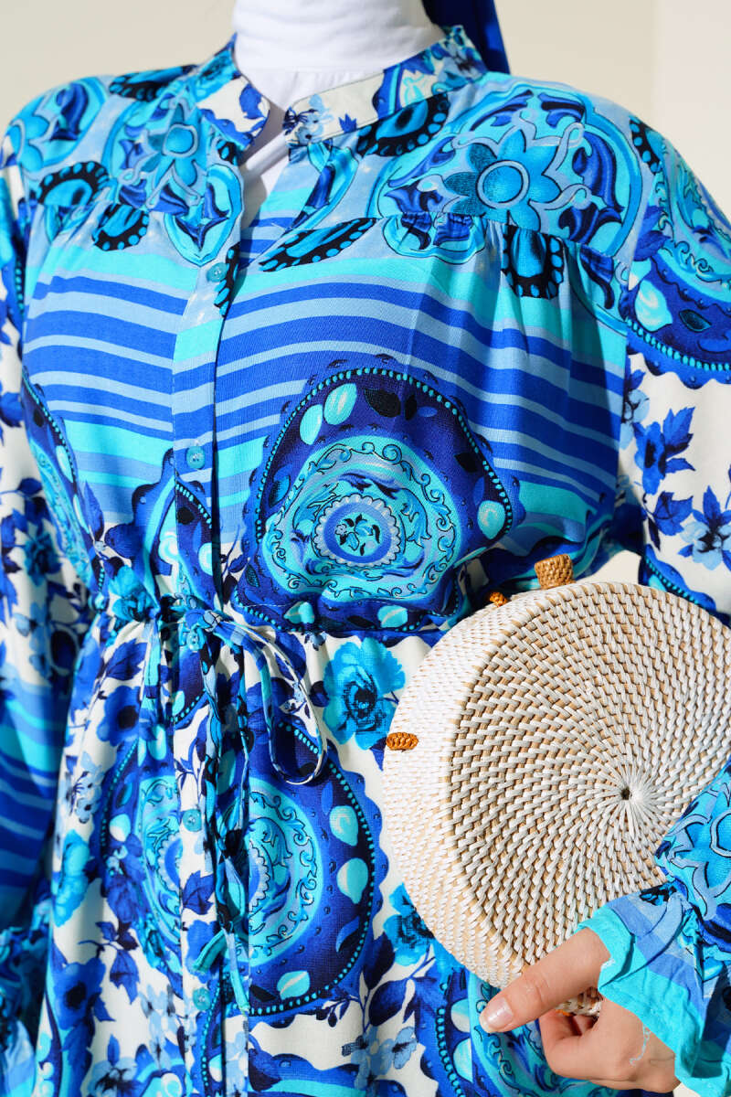 Metal Düğmeli Kolsuz Kot Elbise Koyu Mavi
