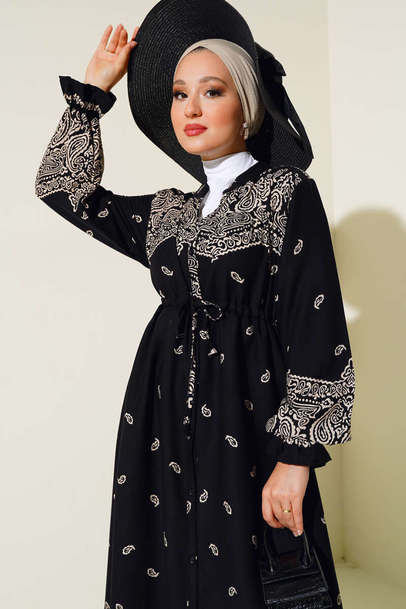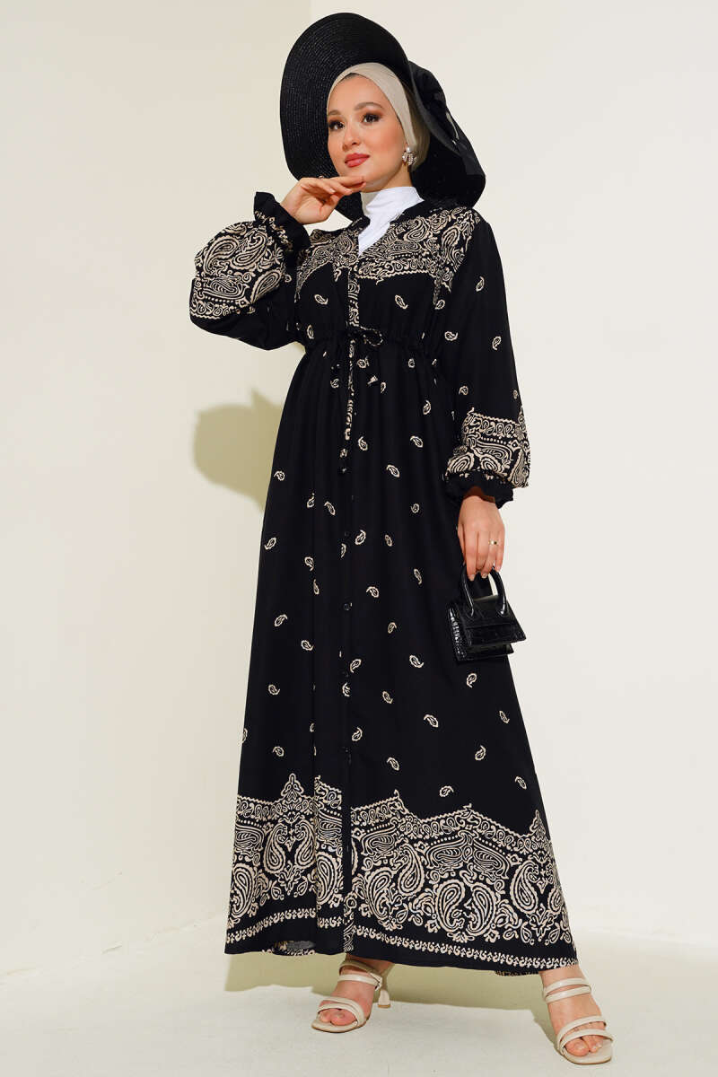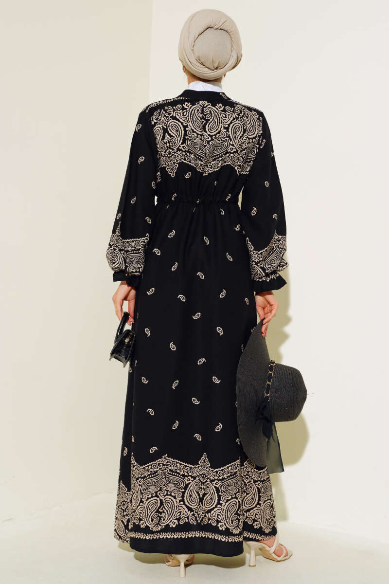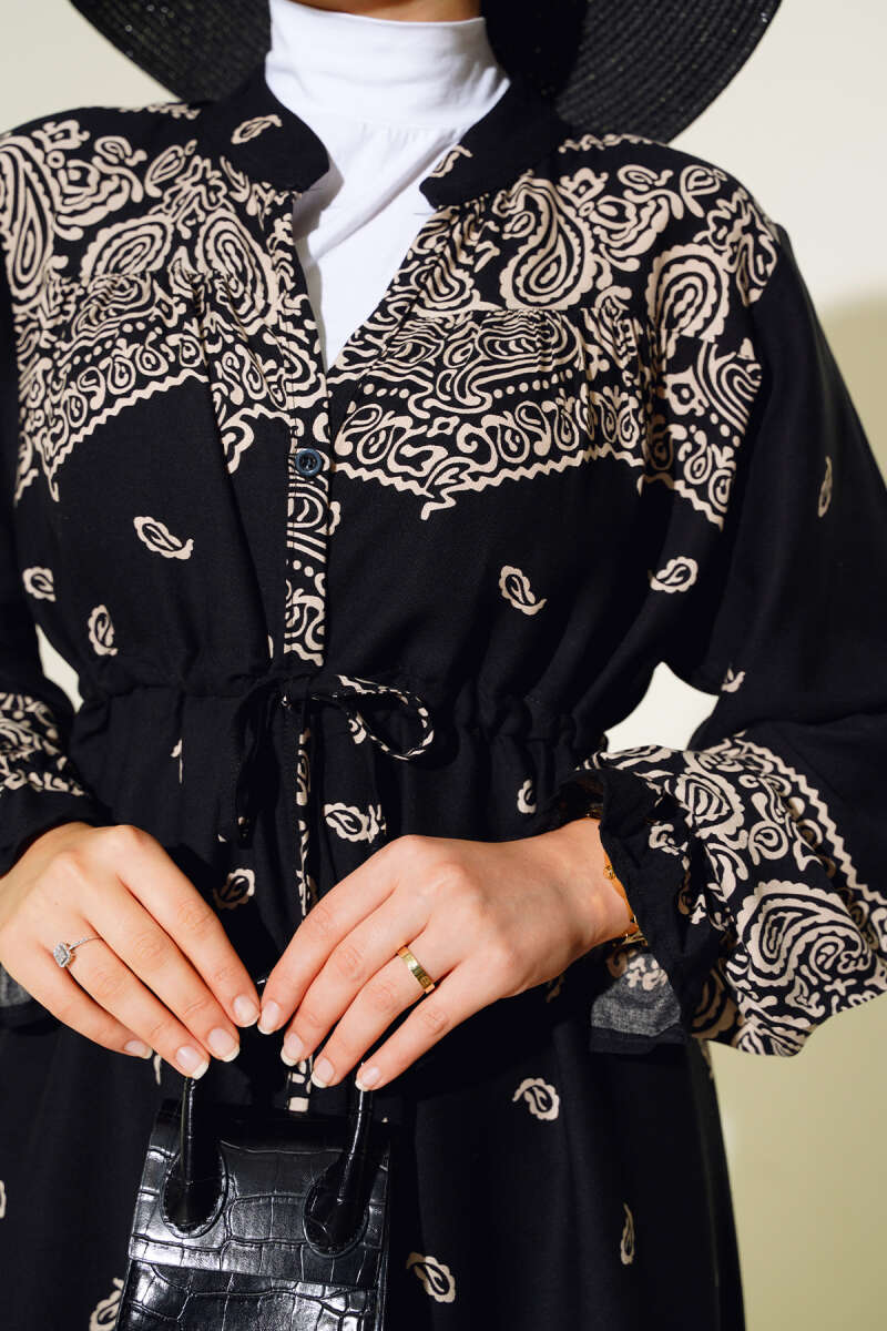 Kolları Zebra Desen Kuşaklı Siyah Elbise