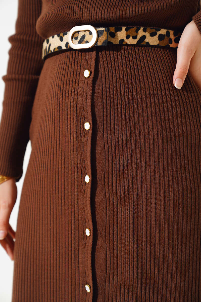 Taşlı Baklava Desen Triko İkili Takım Kahve