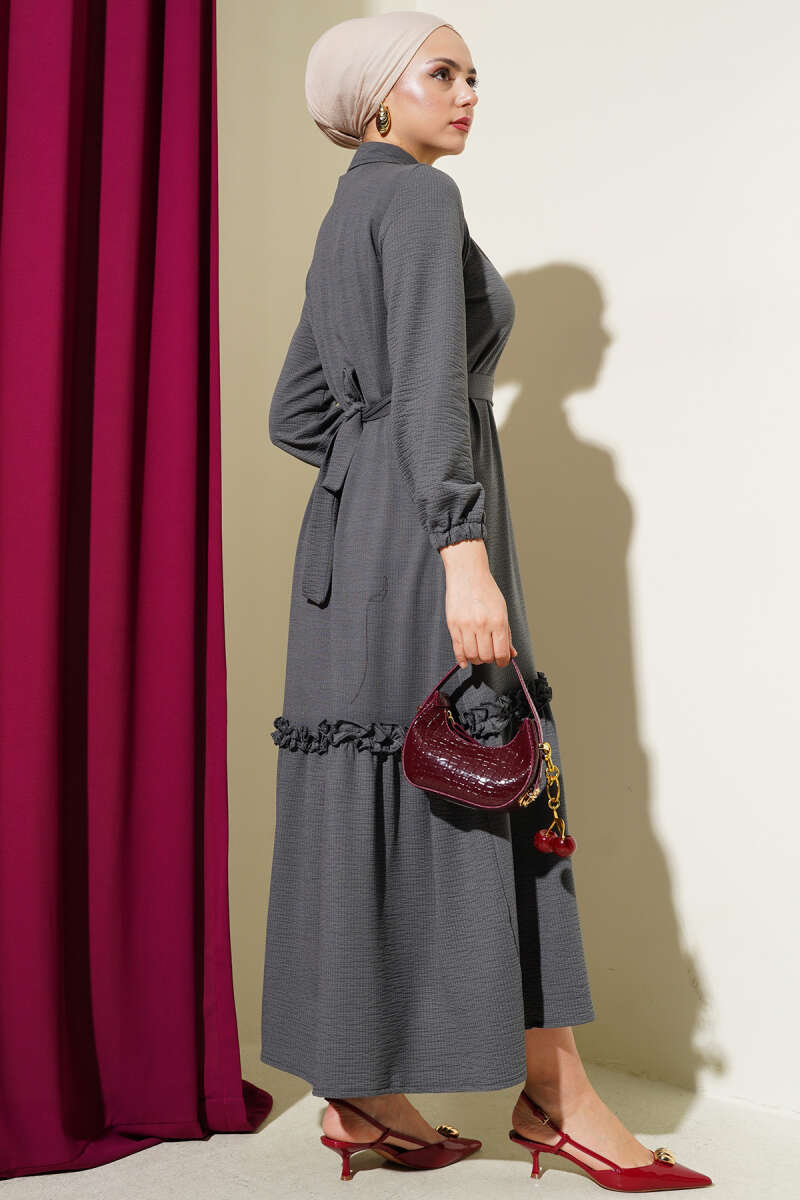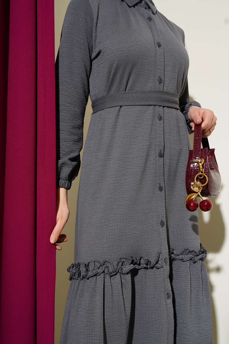 Gömlek Yaka Düğmeli Triko Elbise Nefti