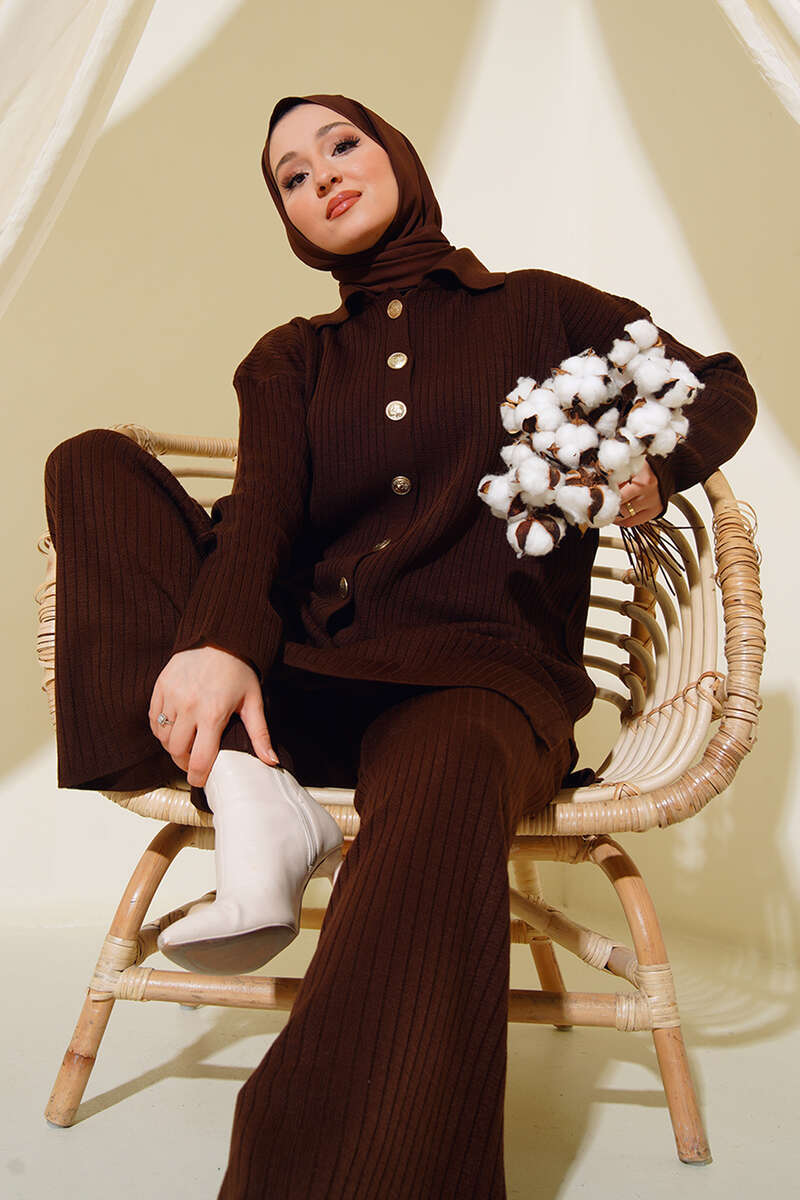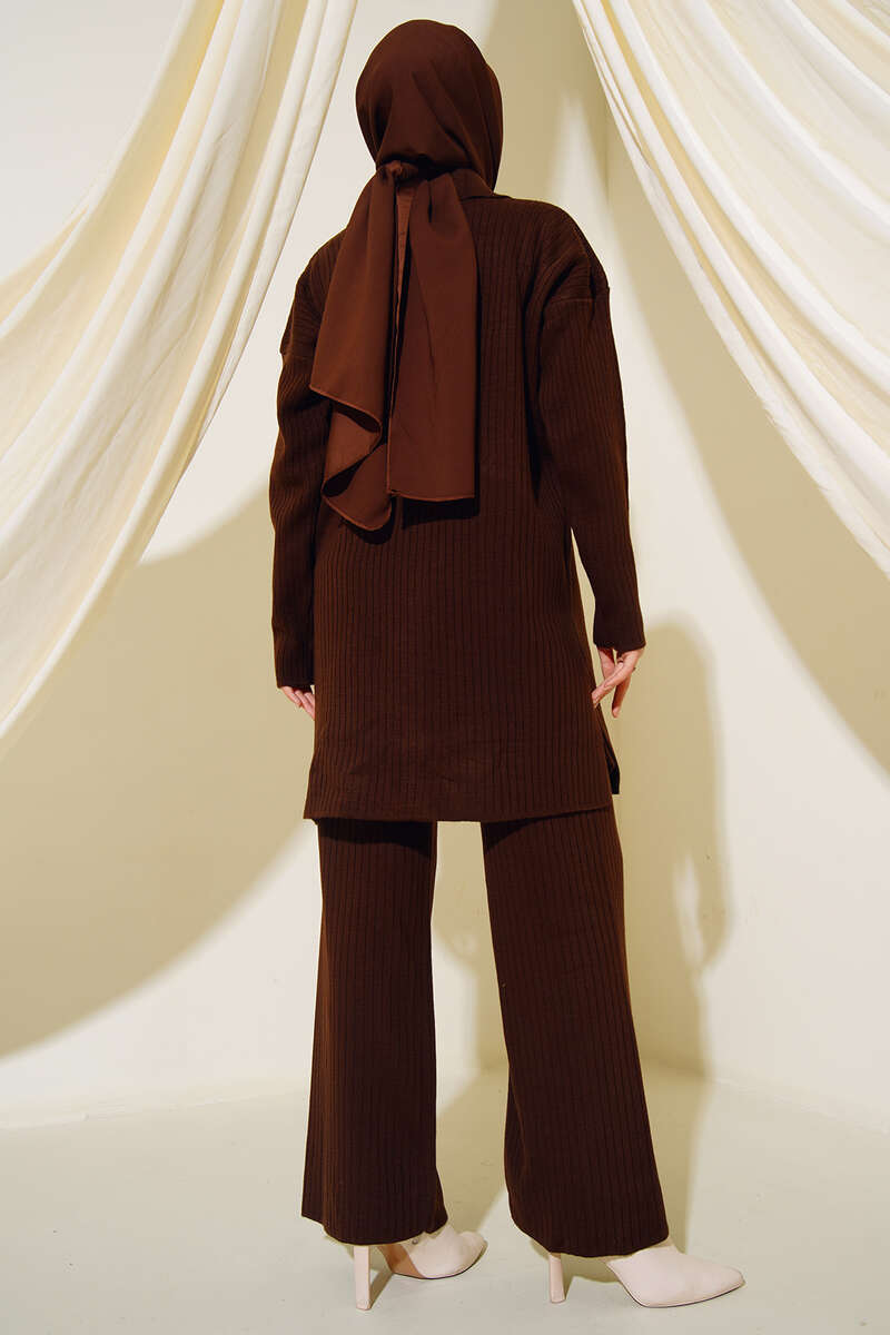 Ürün BilgisiTunikBoy : 84 cmGöğüs: 116 cmBel: 108 cmPantolonBoy: 103 cmBel: 66 cmPaça: 56 cmİkili takımımız pantolon ve tunik olarak iki parçadan oluşmaktadır. Tuniğimiz sarı arma düğmelere sahiptir ve düşük omuzludur. Etek kısımlarında yırtmaç detayları bulunmaktadır. Pantolon bol paçalıdır ve cepsiz modeldir.Kumaş Bilgisi%100 AkrilikModel BilgisiBoy : 167 cmGöğüs : 83 cmBel : 62 cmKalça : 93 cmModelin üzerindeki ürün - Standart - bedendir.
