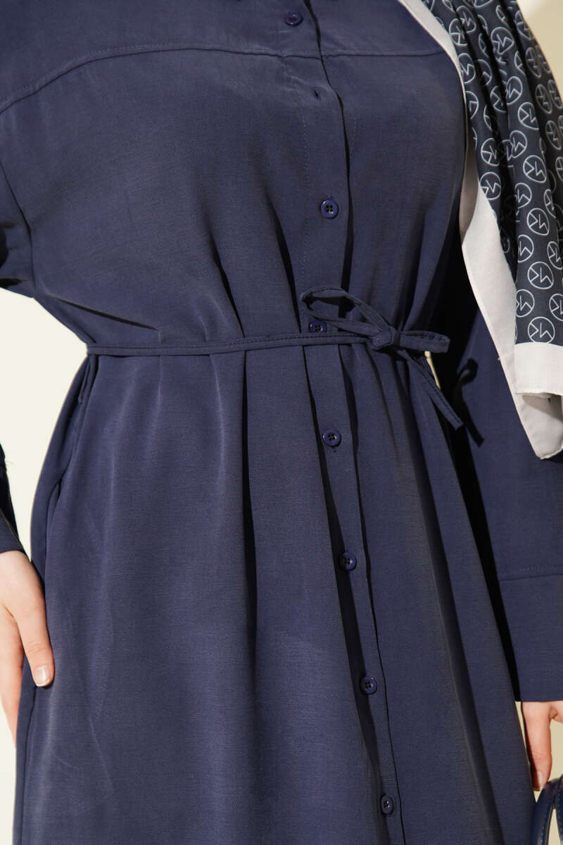 Hakim Yaka Pensli Kemerli Elbise Lacivert