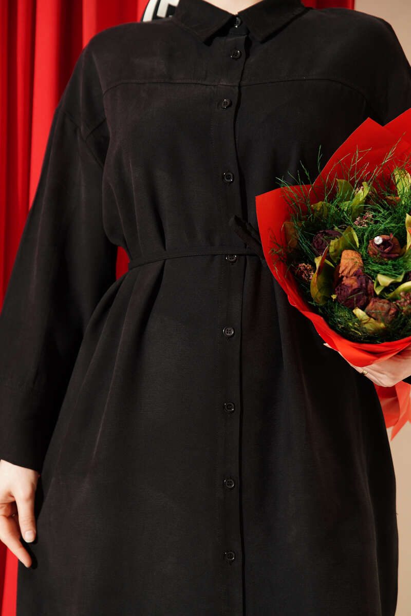 Hakim Yaka Pensli Kemerli Elbise Siyah