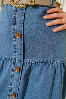 Yeni sezon kot eteğimiz favori parçanız olacak. Eteğimizin dört adet kemer köprüsü bulunmaktadır. İçi astarsız olan eteğimiz yandan fermuarlıdır. Boydan düğmeli olan eteğimiz aynı zamanda kat kat modeldir. Hareketli bir görünüme sahip olan kombinlerinizin vazgeçilmez parçası olacak eteğimiz dolaplarınızda yerlerini beklemekte.