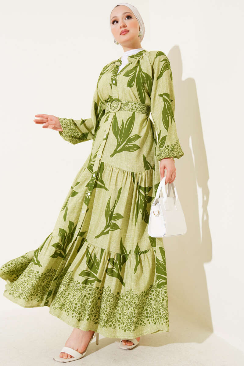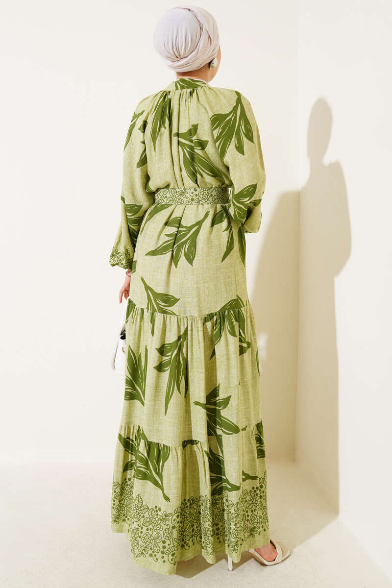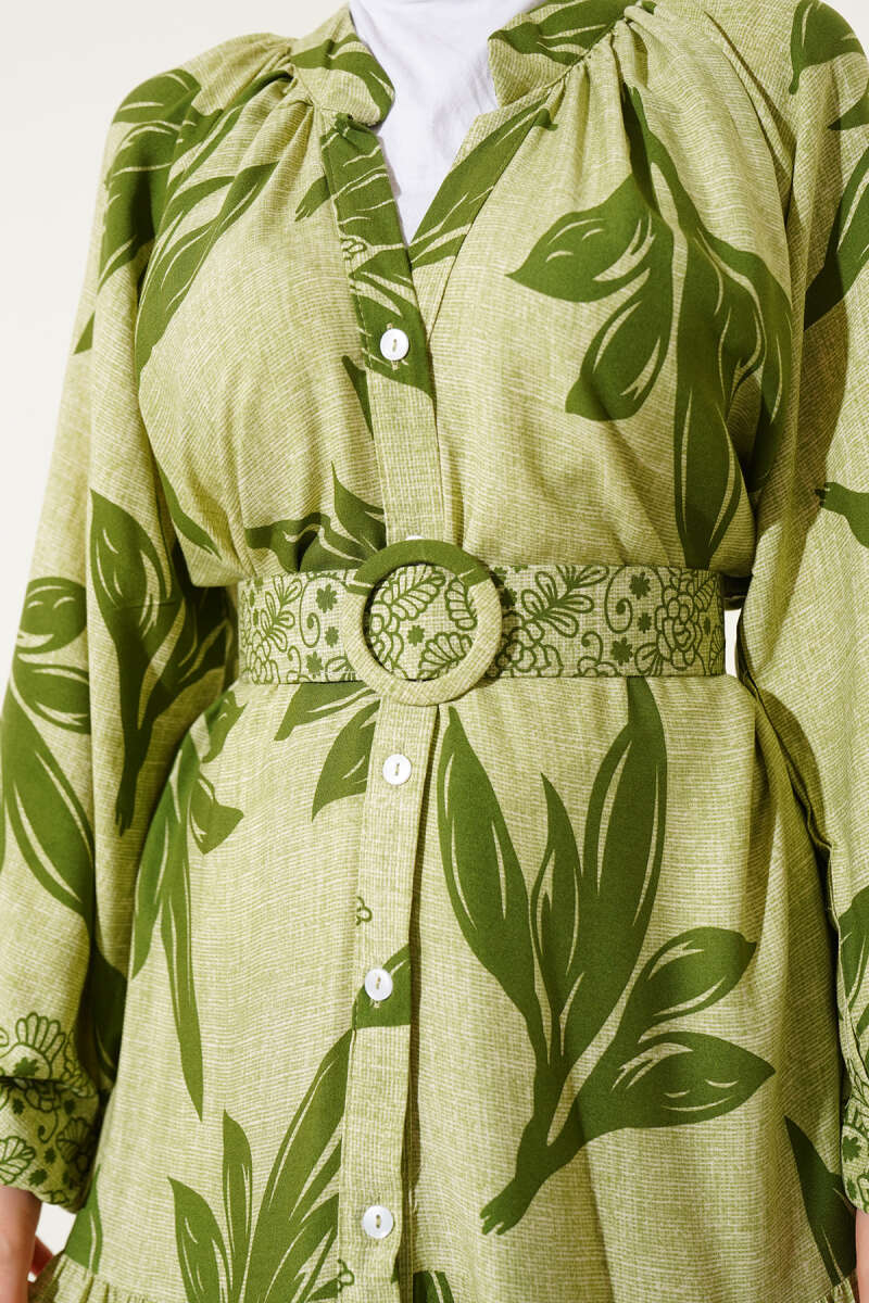 Scuba Pens Detaylı Kemerli Elbise Haki