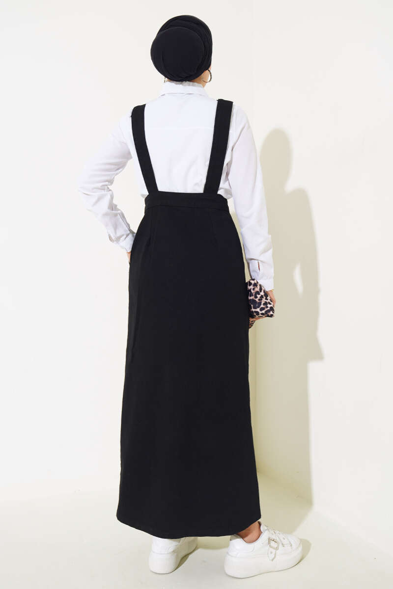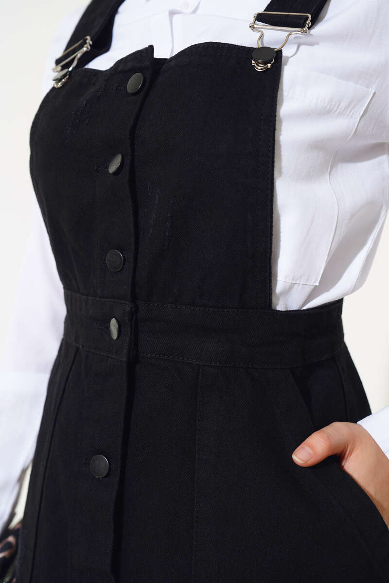 Boydan Metal Düğmeli Askılı Kot Slopet Siyah