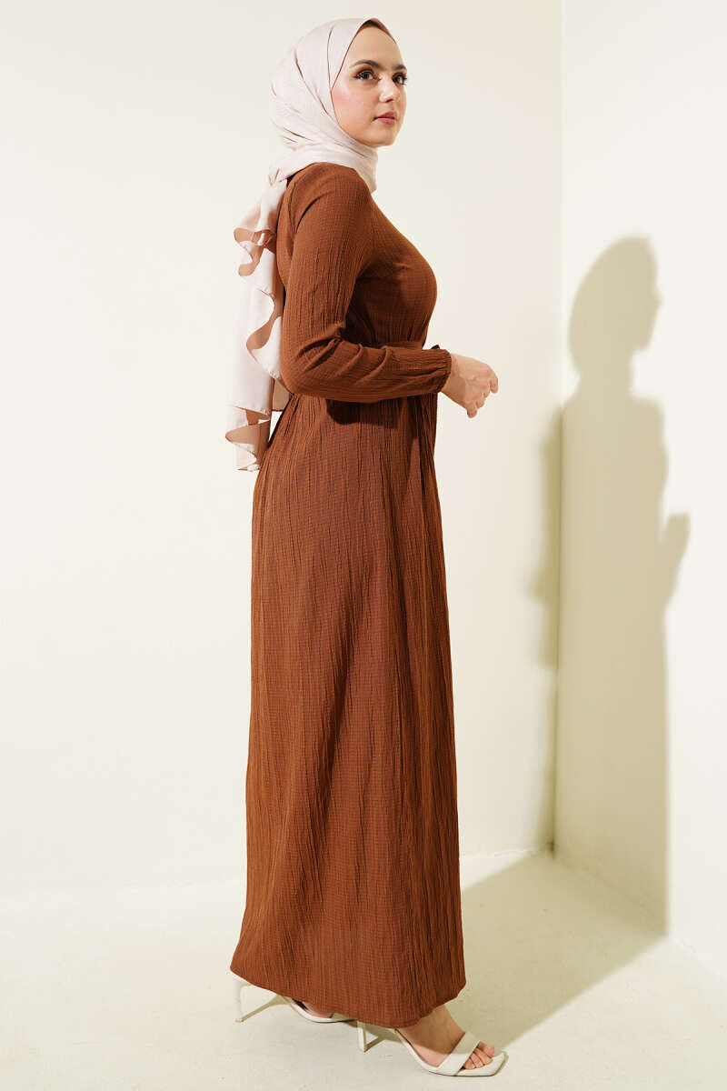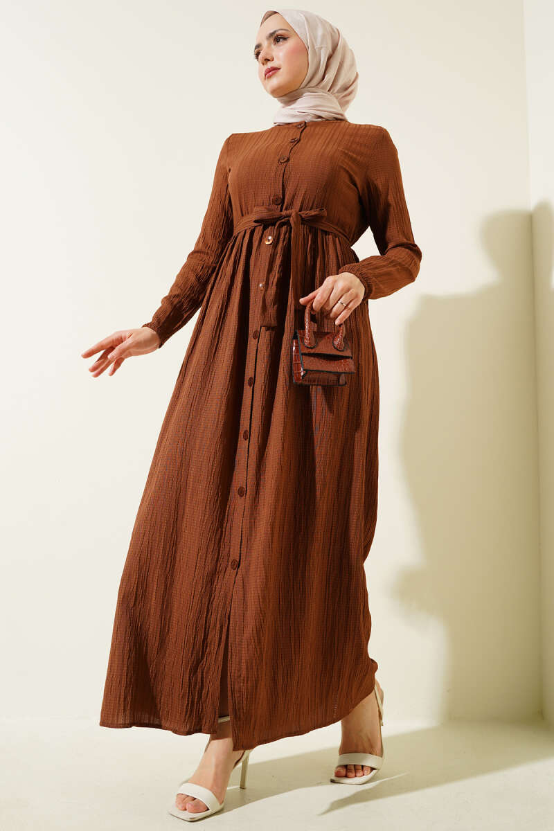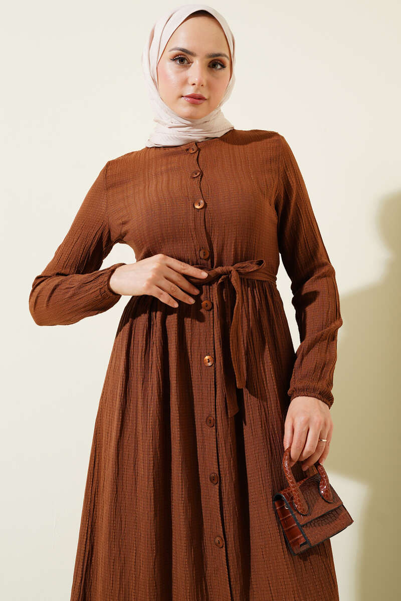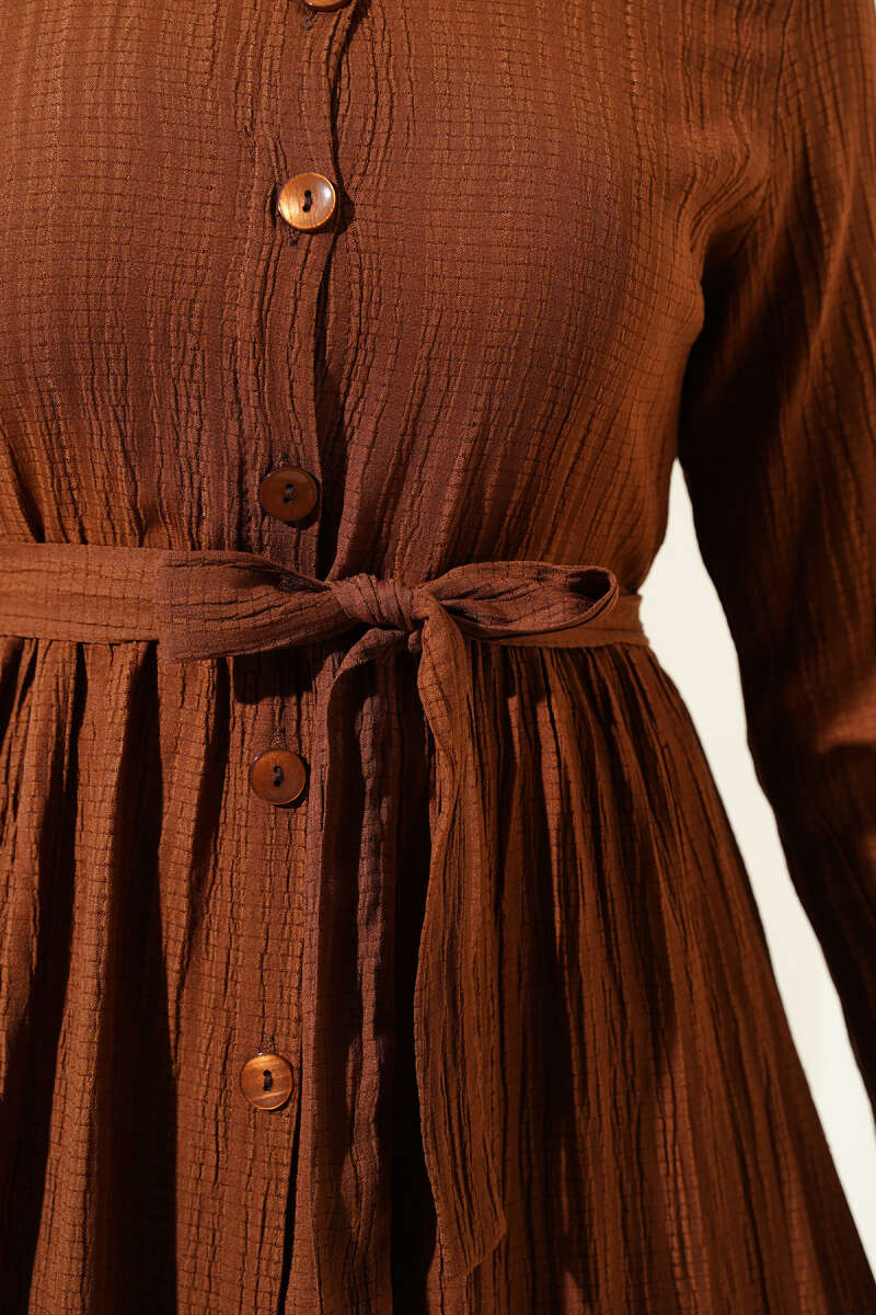 Boydan Düğmeli Kuşaklı Basic Elbise Gri