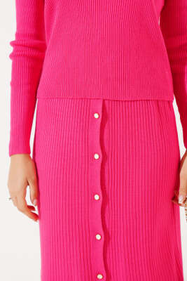 İnci Süslemeli Etekli Triko İkili Takım Büsküvi