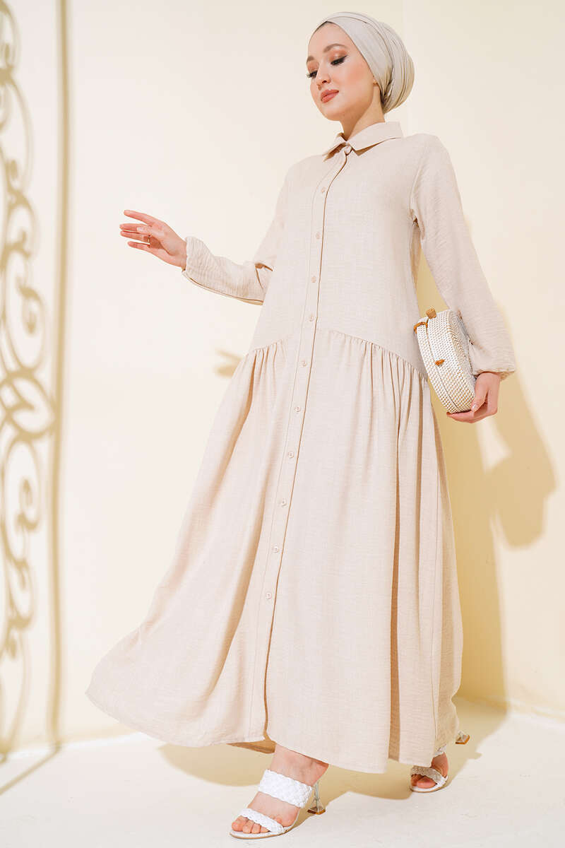Yeni sezon elbisemizi çok seveceksiniz. Salaş elbisemizin önü boydan düğmelidir. Kat elbise modelimizin kol bilekleri lastiklidir. Gömlek yaka modeldir. Omuzları vatkalıdır. Salaş elbisemizin renk seçenekleri mevcuttur.