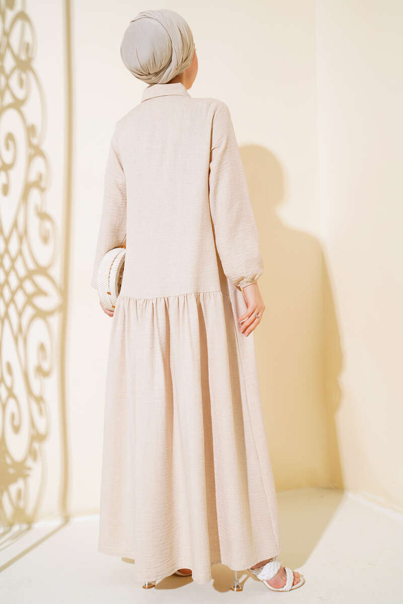 Sim Sakallı Bilek Bağcıklı Elbise Bej
