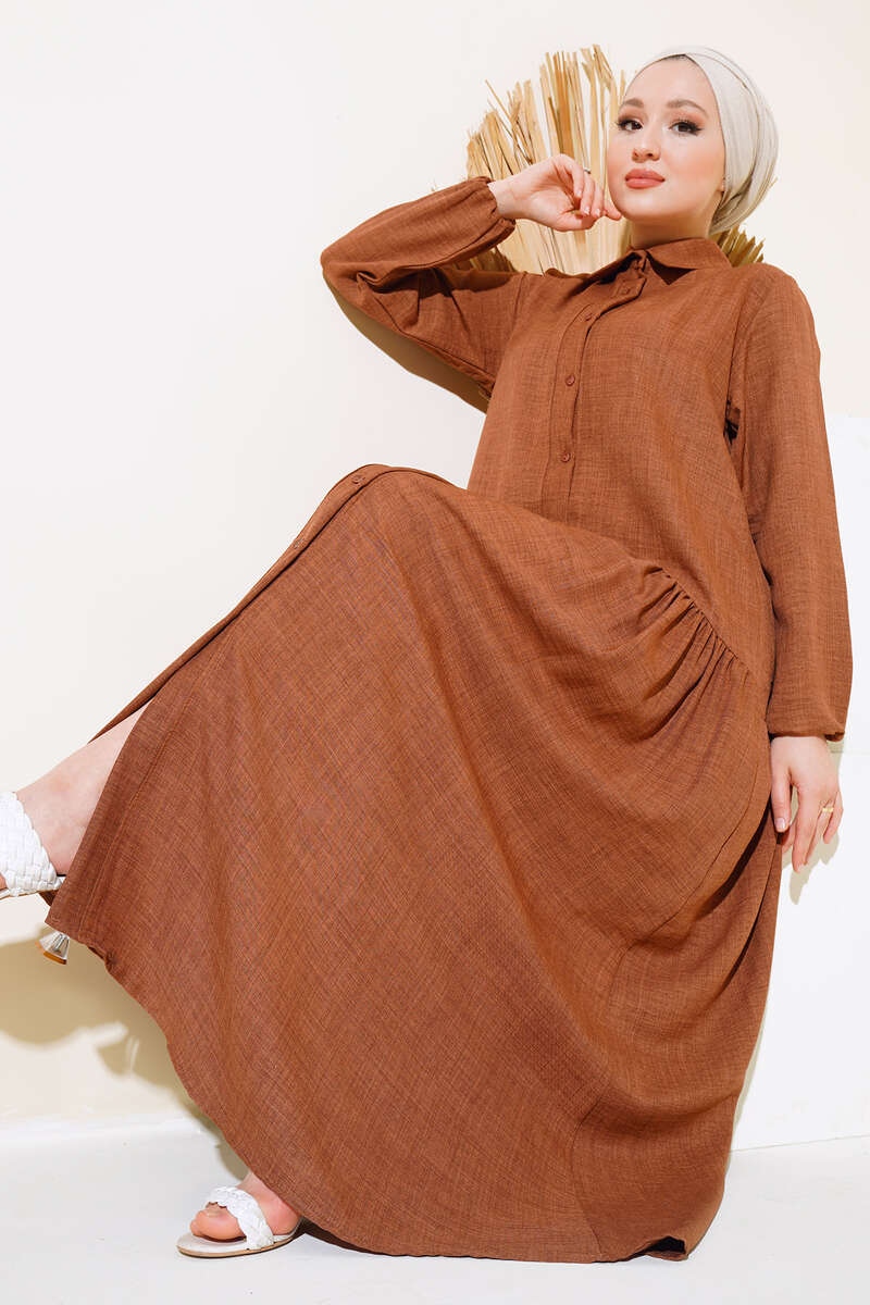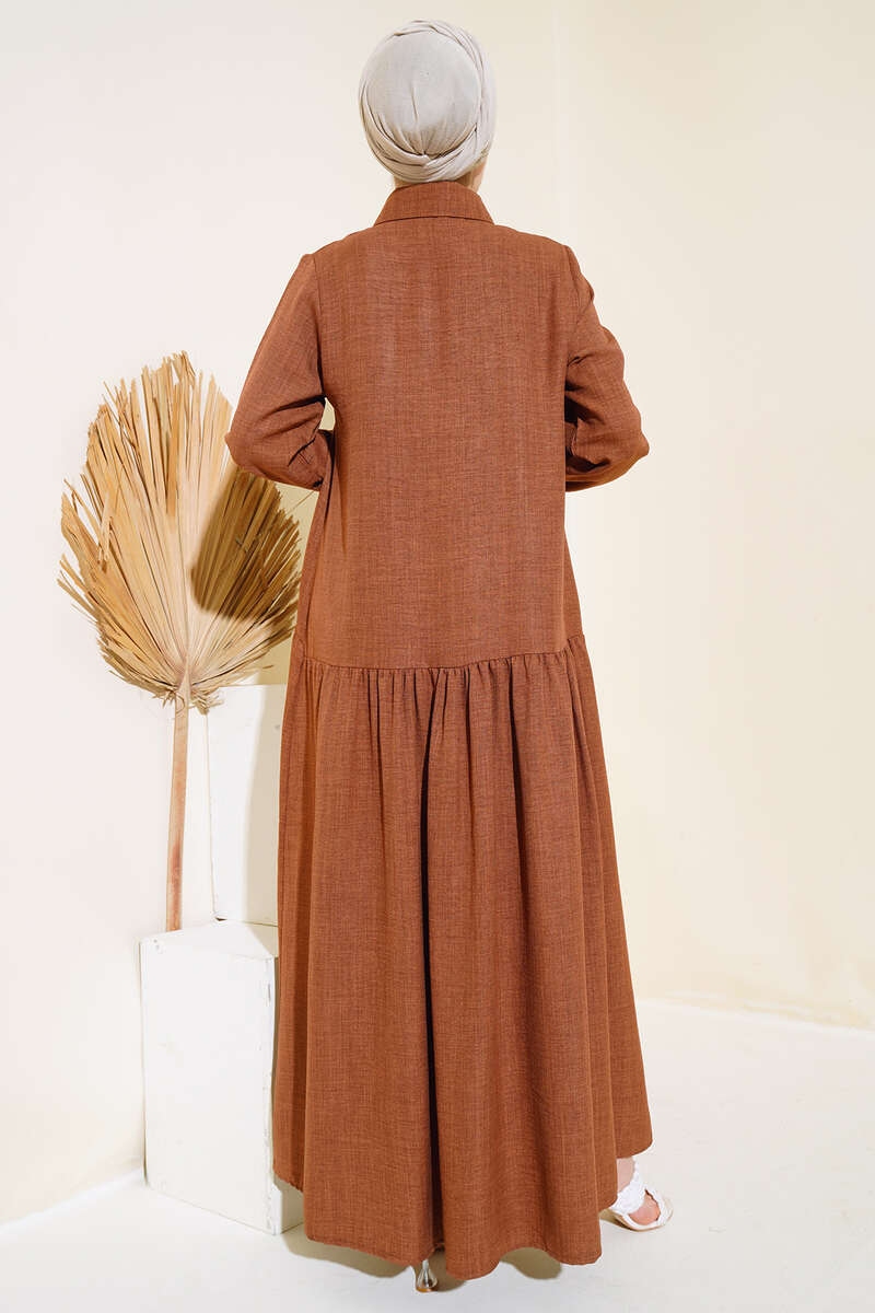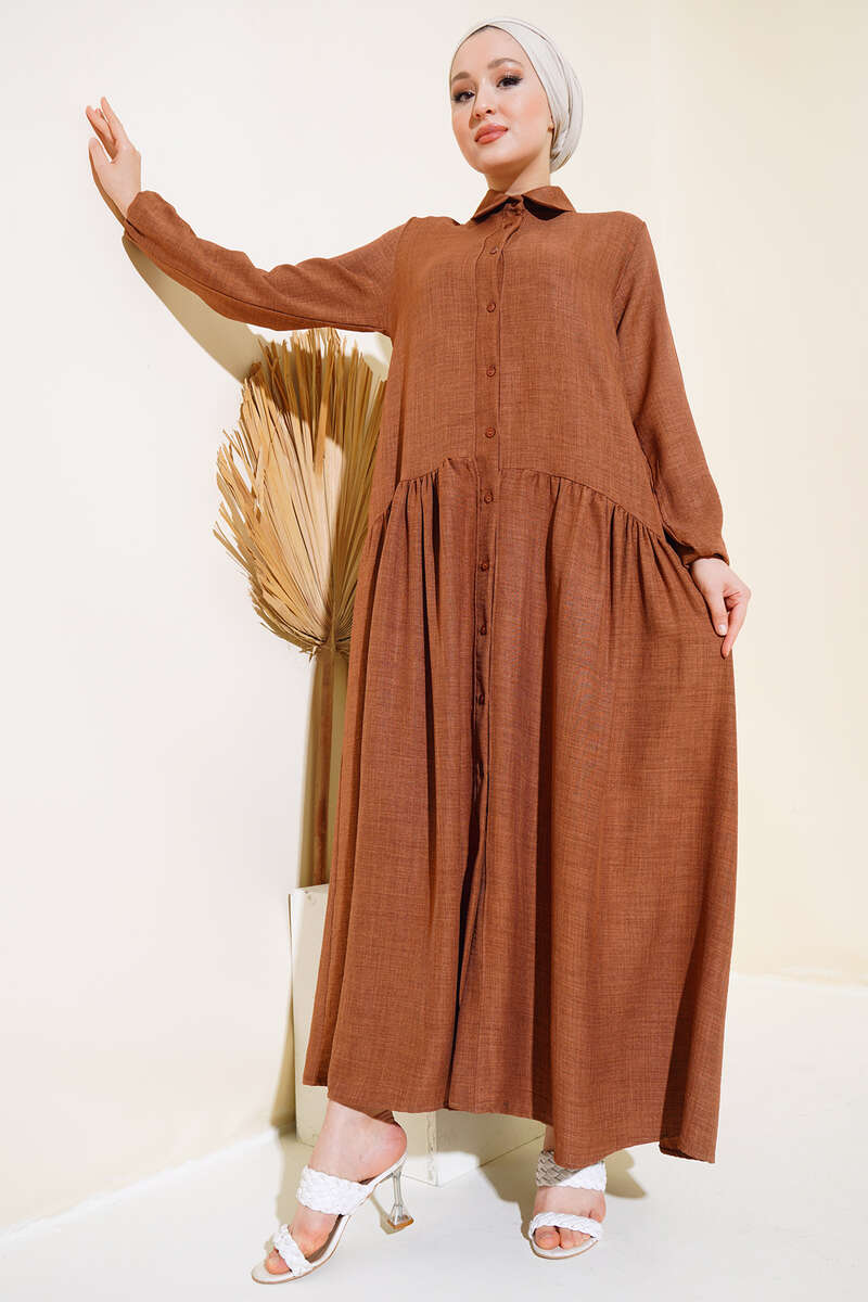 Boydan Düğmeli Salaş Elbise Kahve