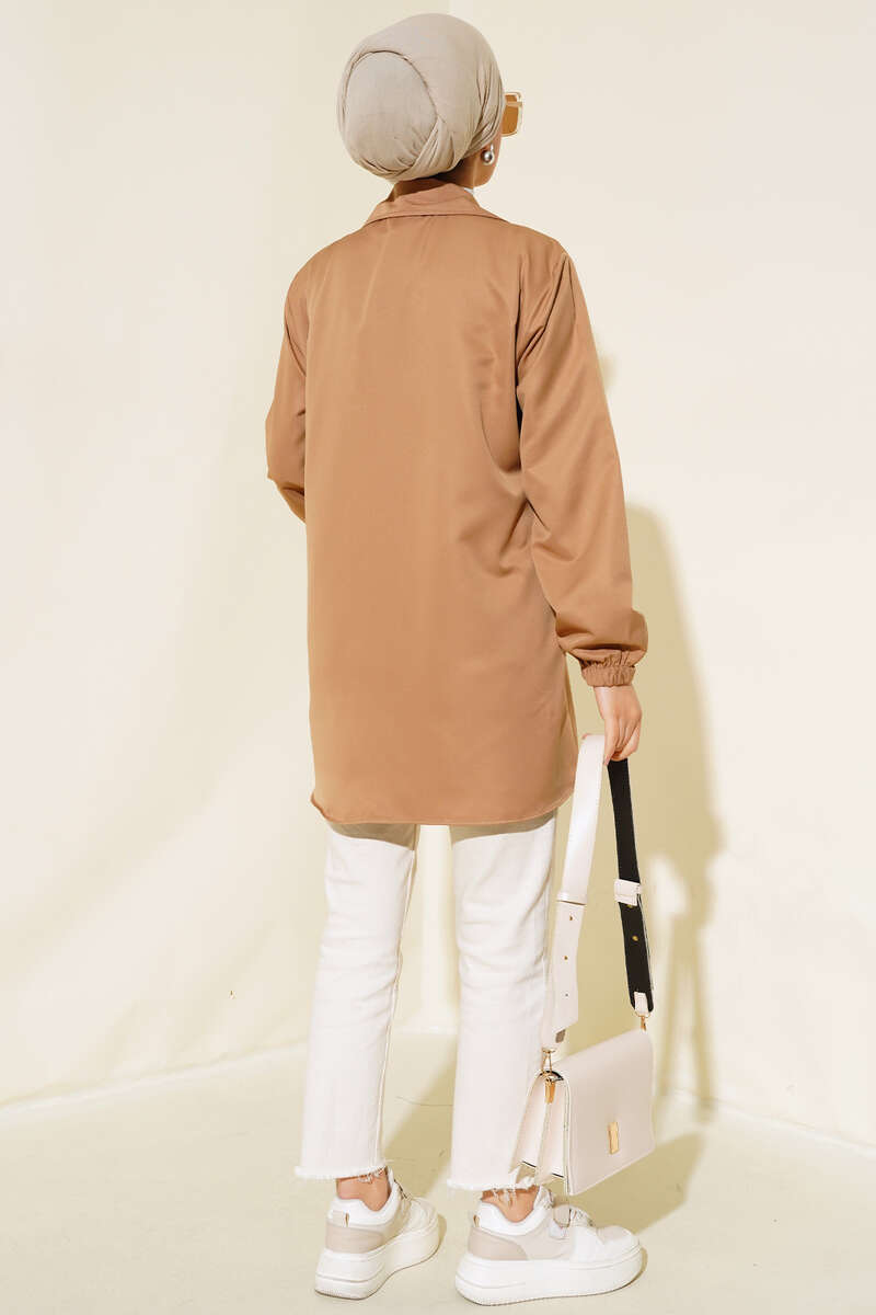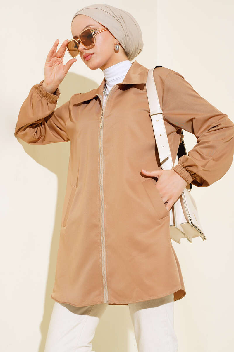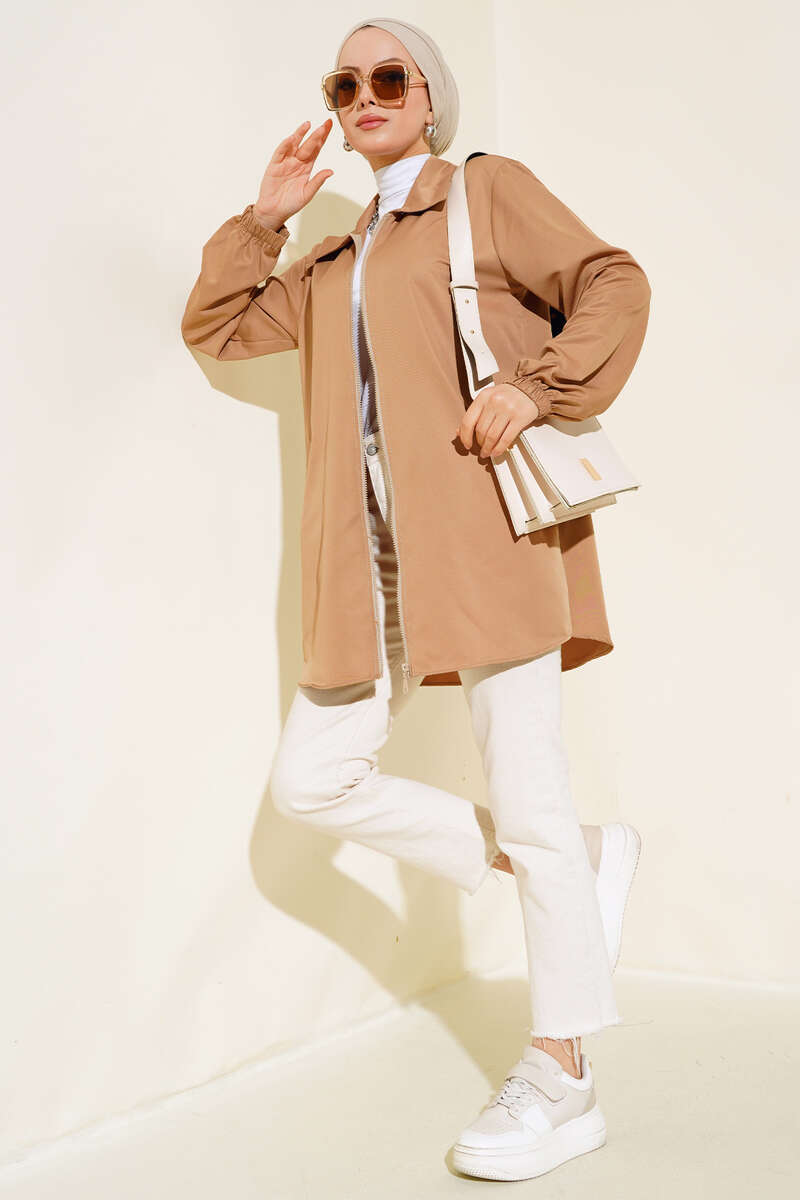 Boydan Fermuarlı Ceket Camel