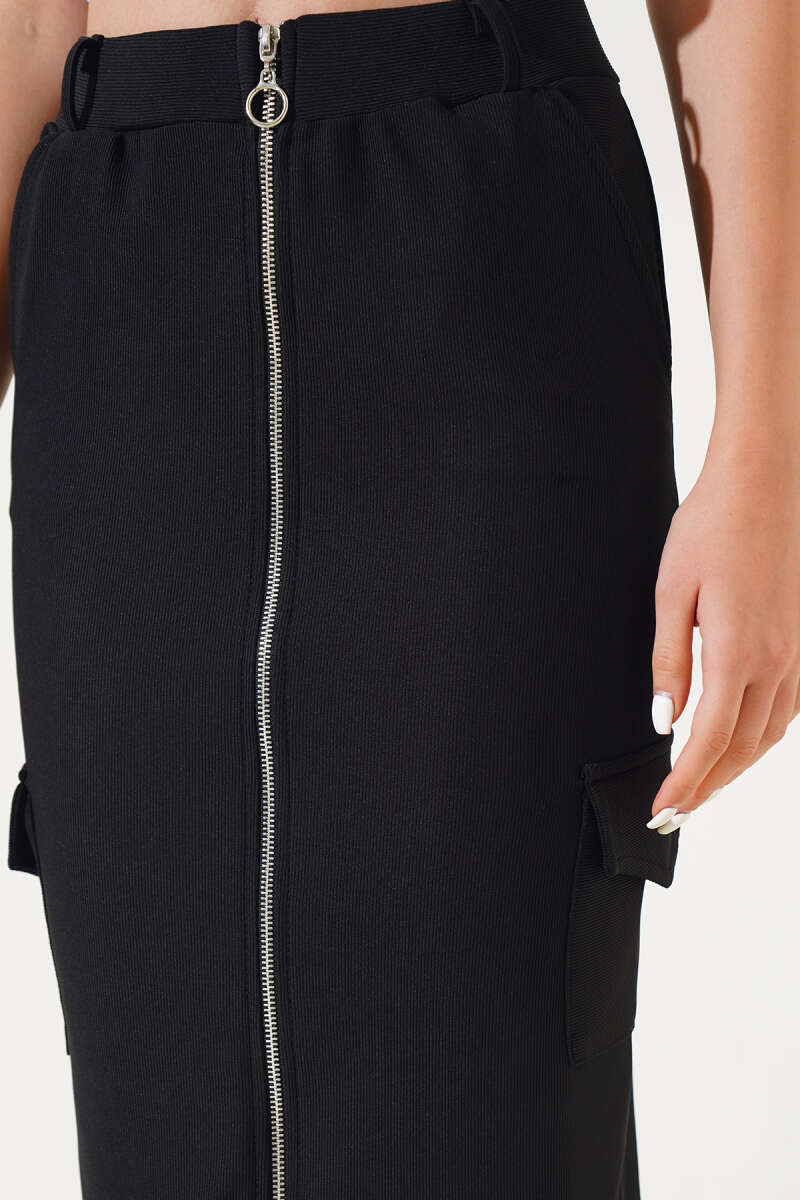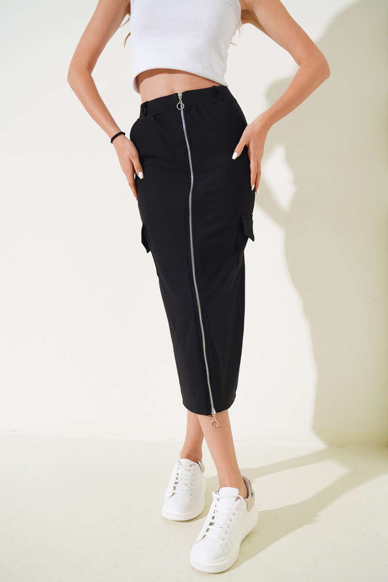 Boydan Fermuarlı Midi Etek Siyah