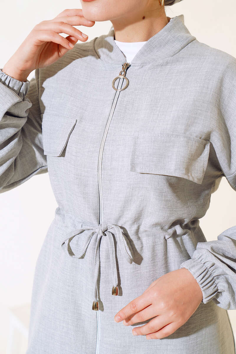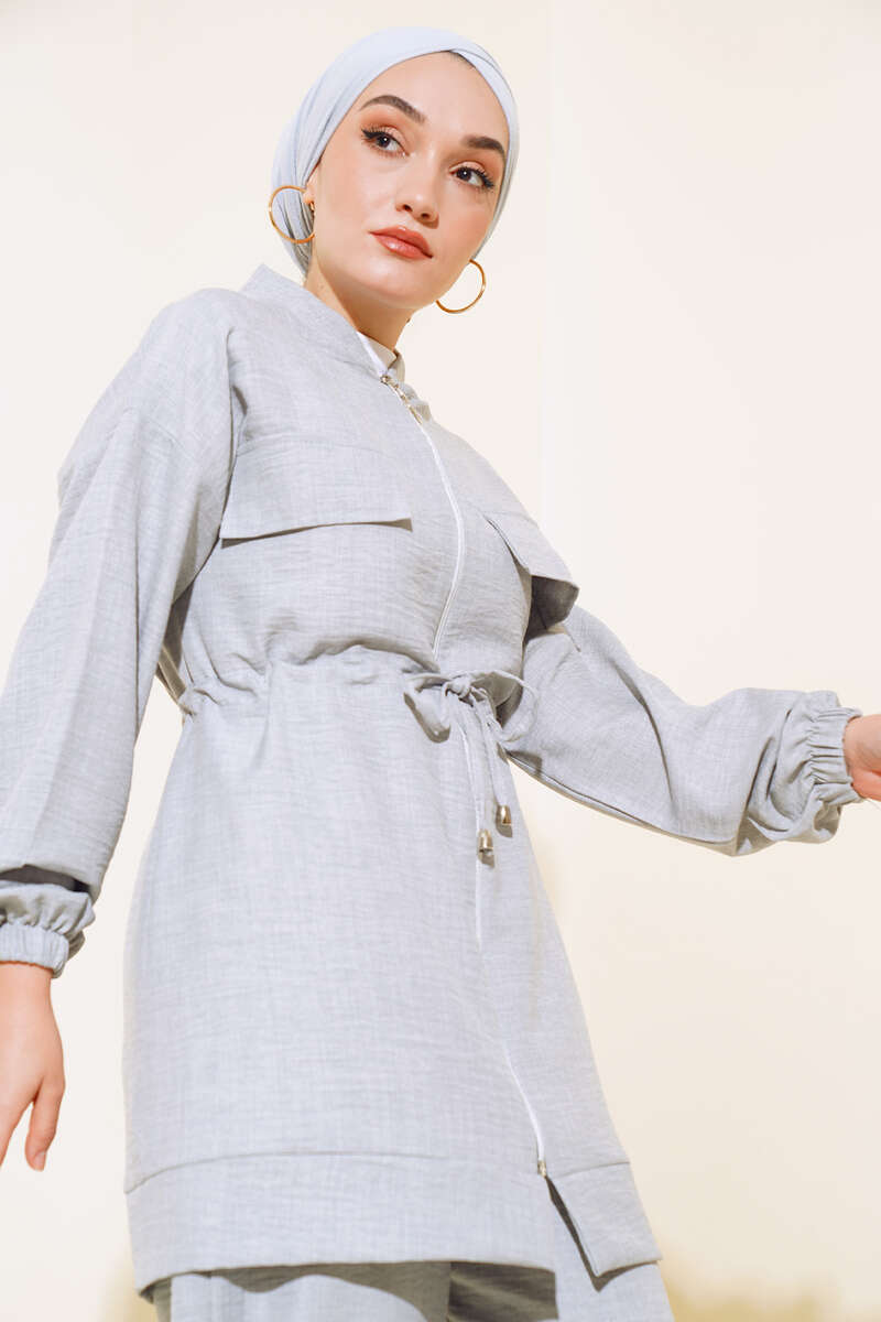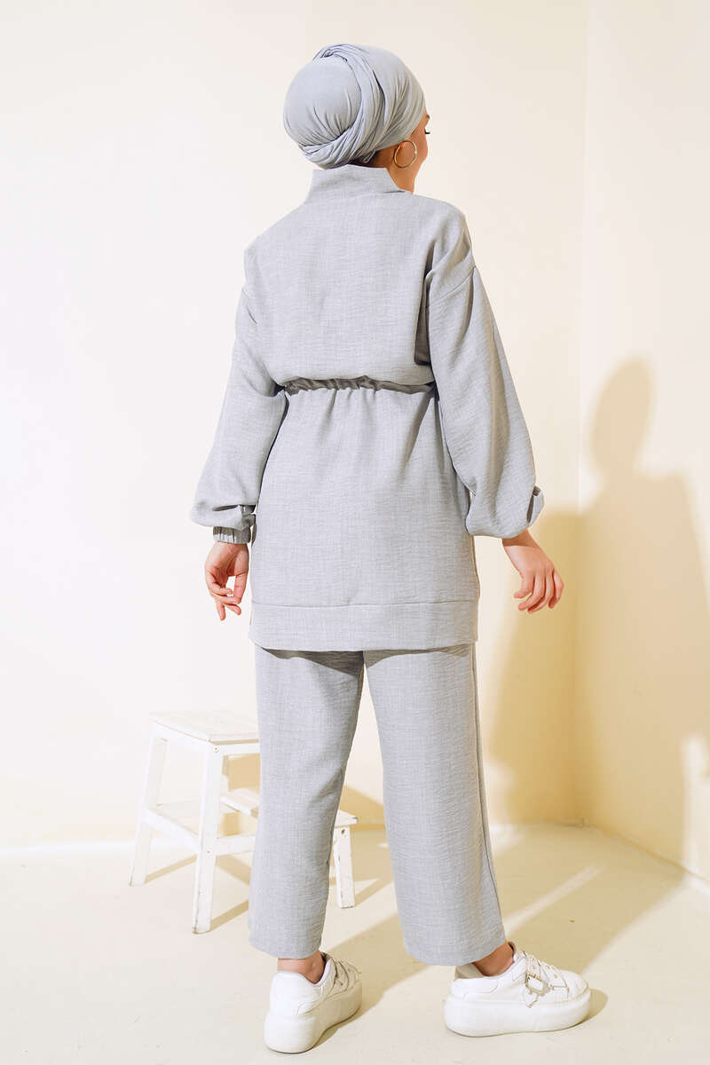 Boydan Fermuarlı Tünelli Keten İkili Takım Gri