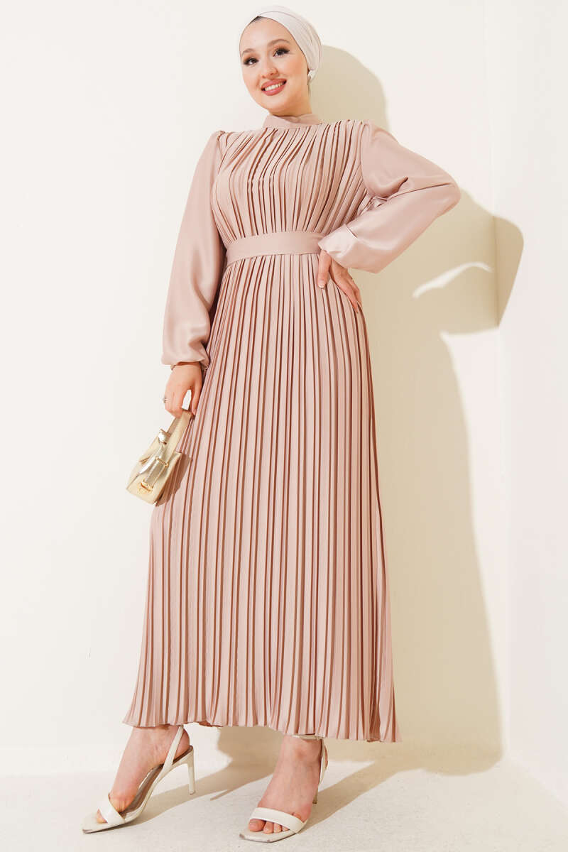 Bilek Bağlamalı Kuşaklı Abiye Elbise Haki
