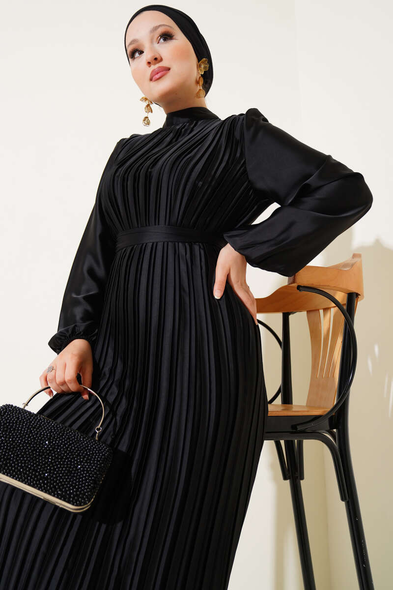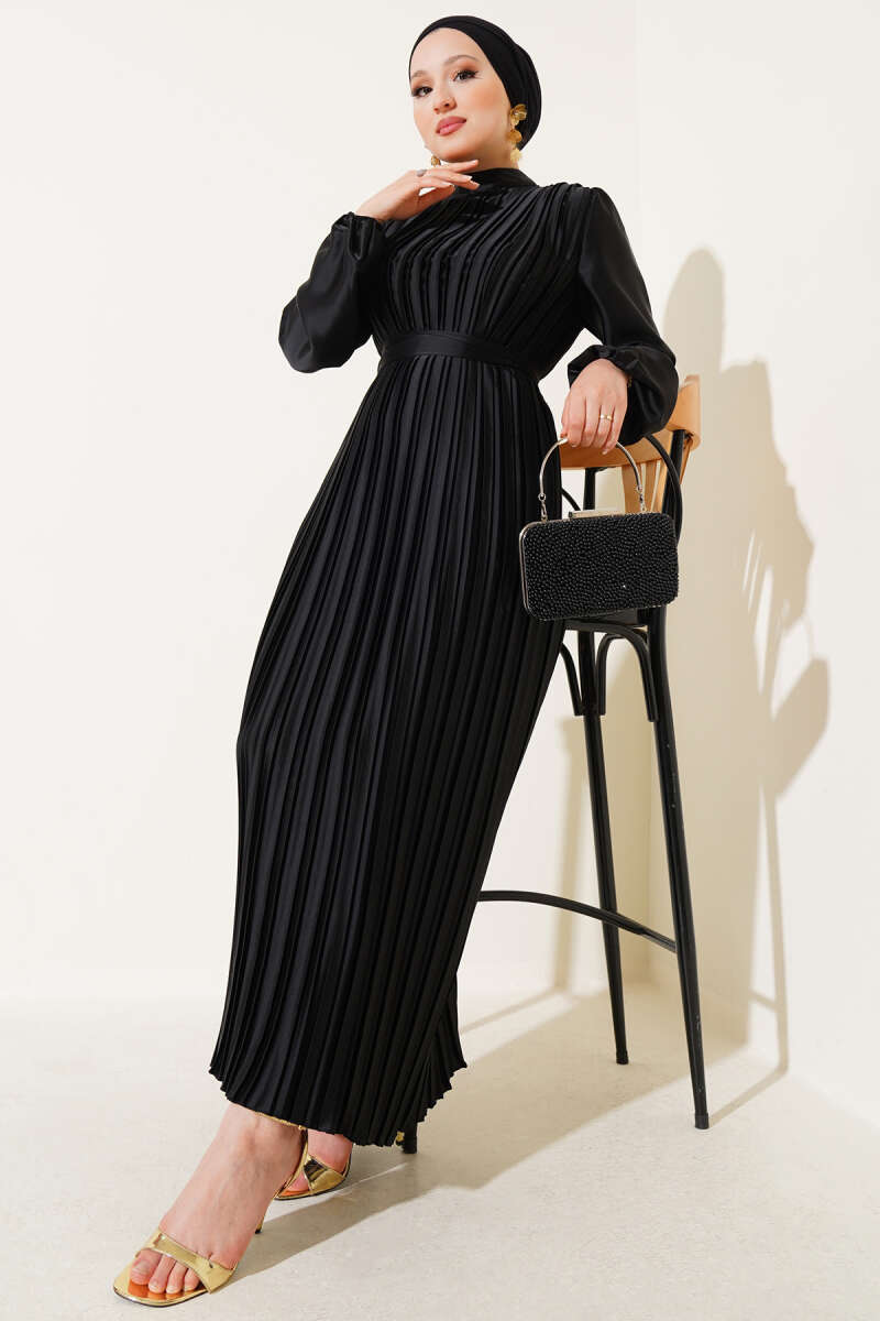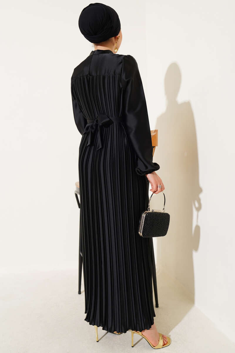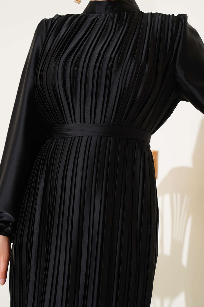 Kol Ucu Kürklü Fitilli Kaşe Elbise Siyah