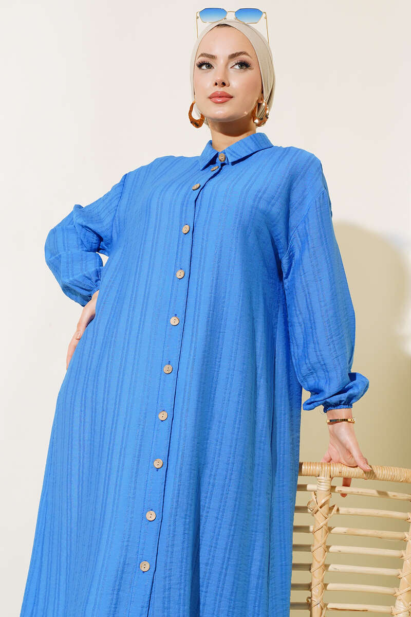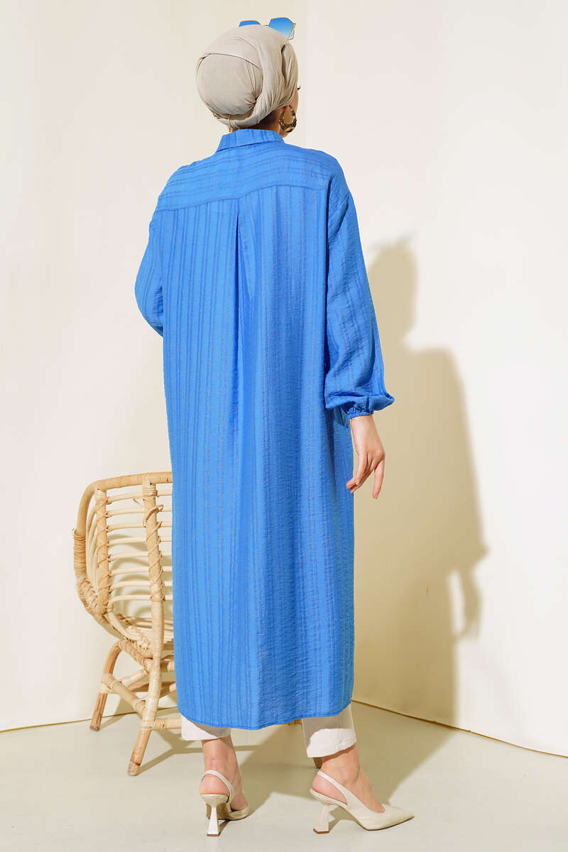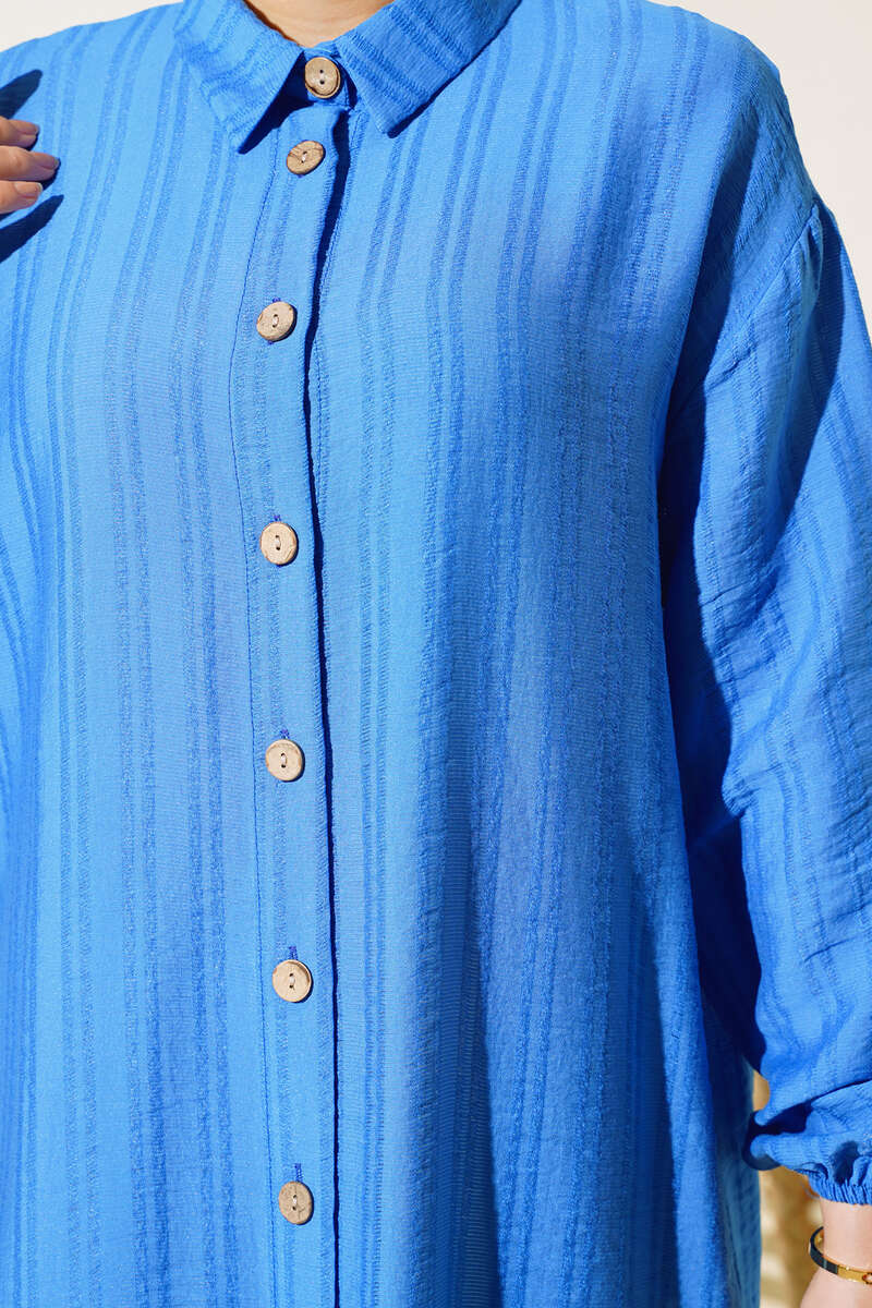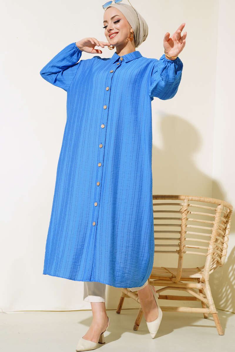 Yeni sezon tunik modelimiz sizlerle beraber. Tuniğimiz boydan tahta düğmeli modeldir. Kol bilekleri lastiklidir. Tuniğimiz klasik yaka olup, arkasında pens bulunmaktadır. Tuniğimiz rahat ve şık görüntüsüyle bahar ve yaz aylarının favorisi olacaktır.