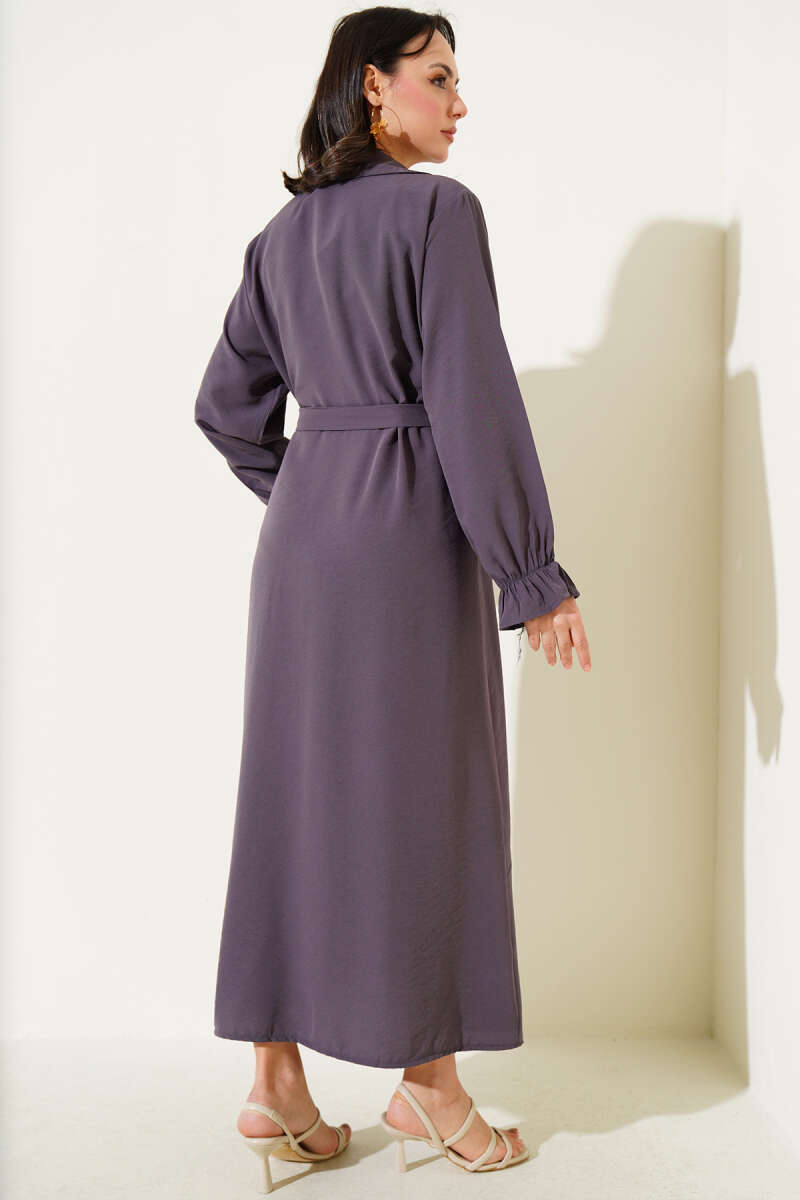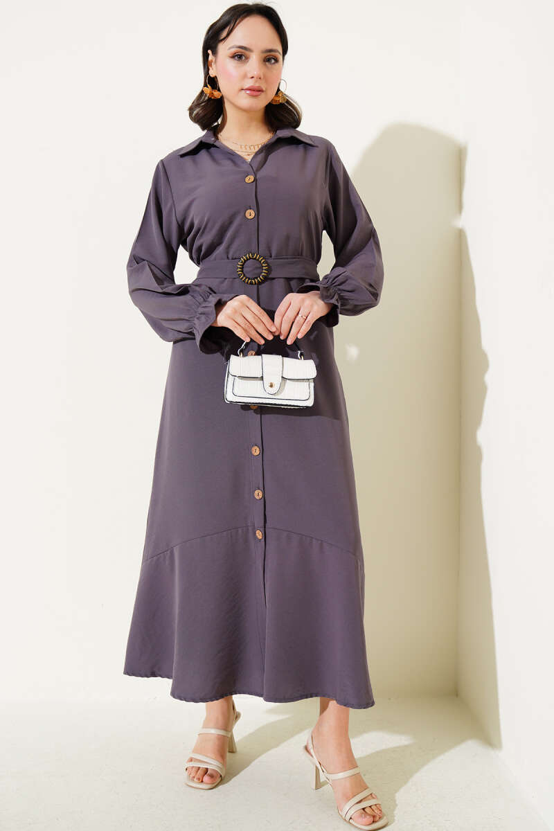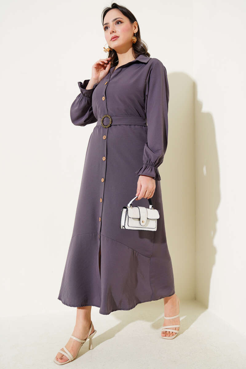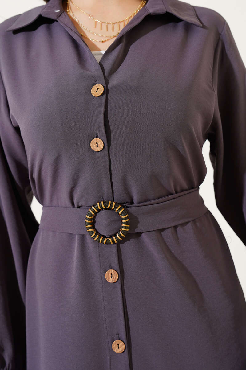 Gömlek Yaka Düğmeli Triko Elbise Nefti
