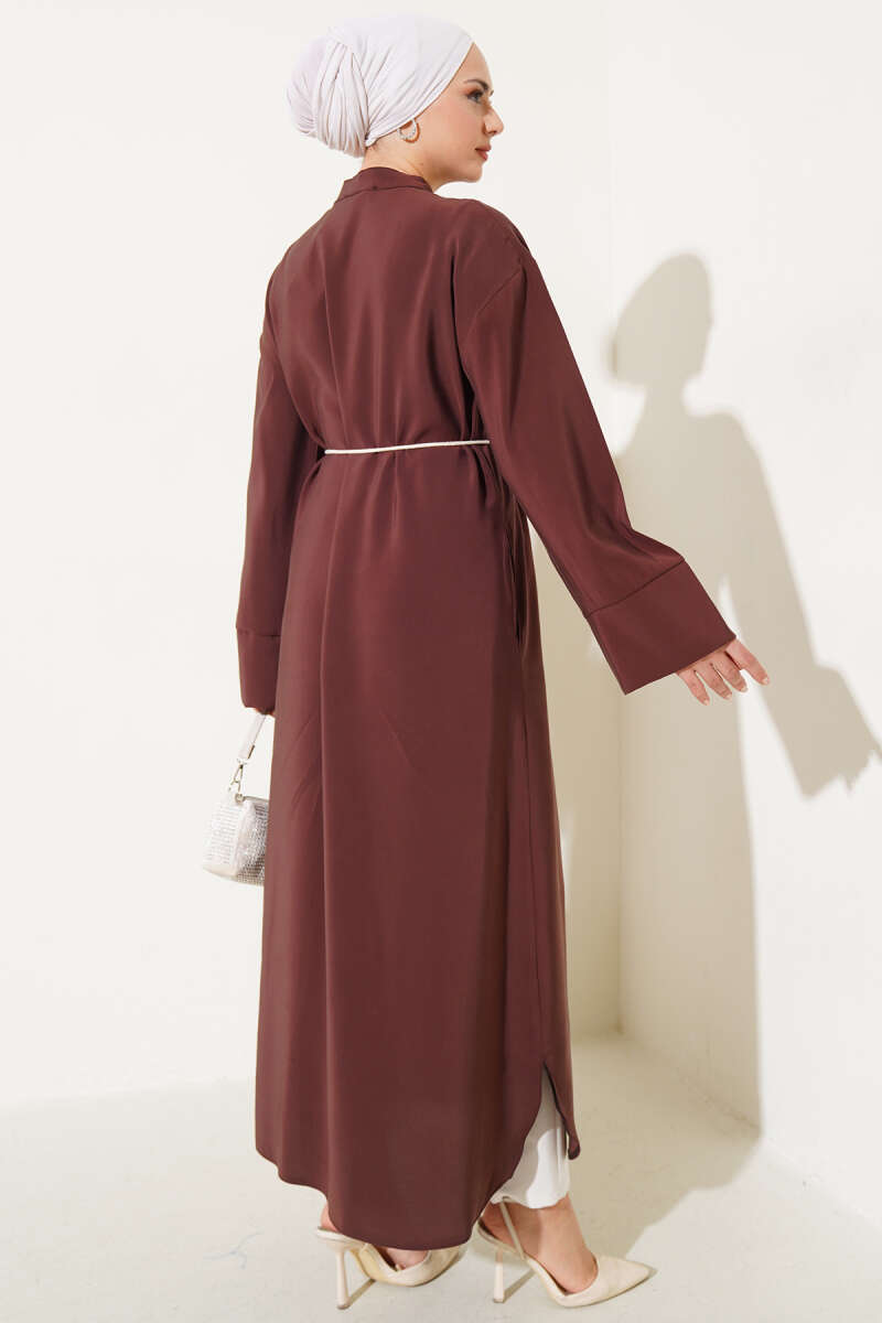 Pelerin Detaylı Pileli Triko Elbise Kahve
