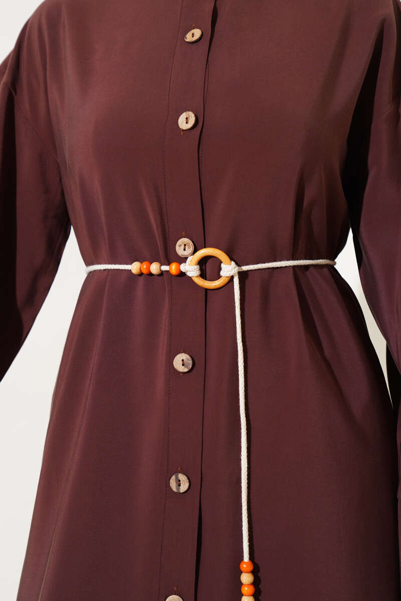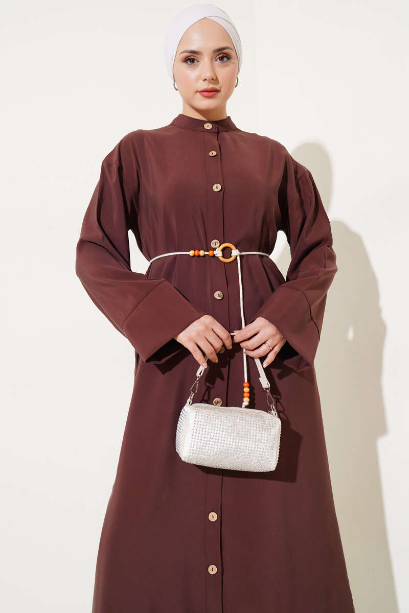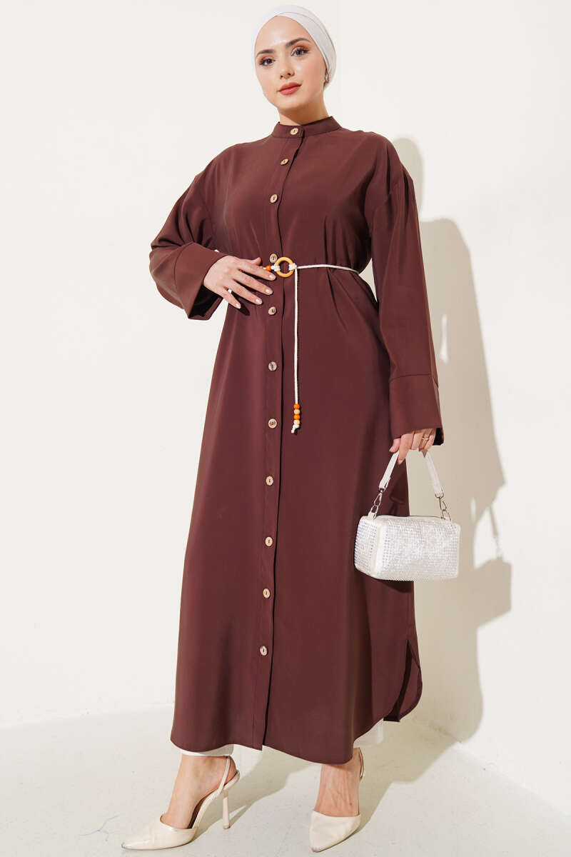 Yarım Yaka Fermuarlı Scuba Elbise Kahve