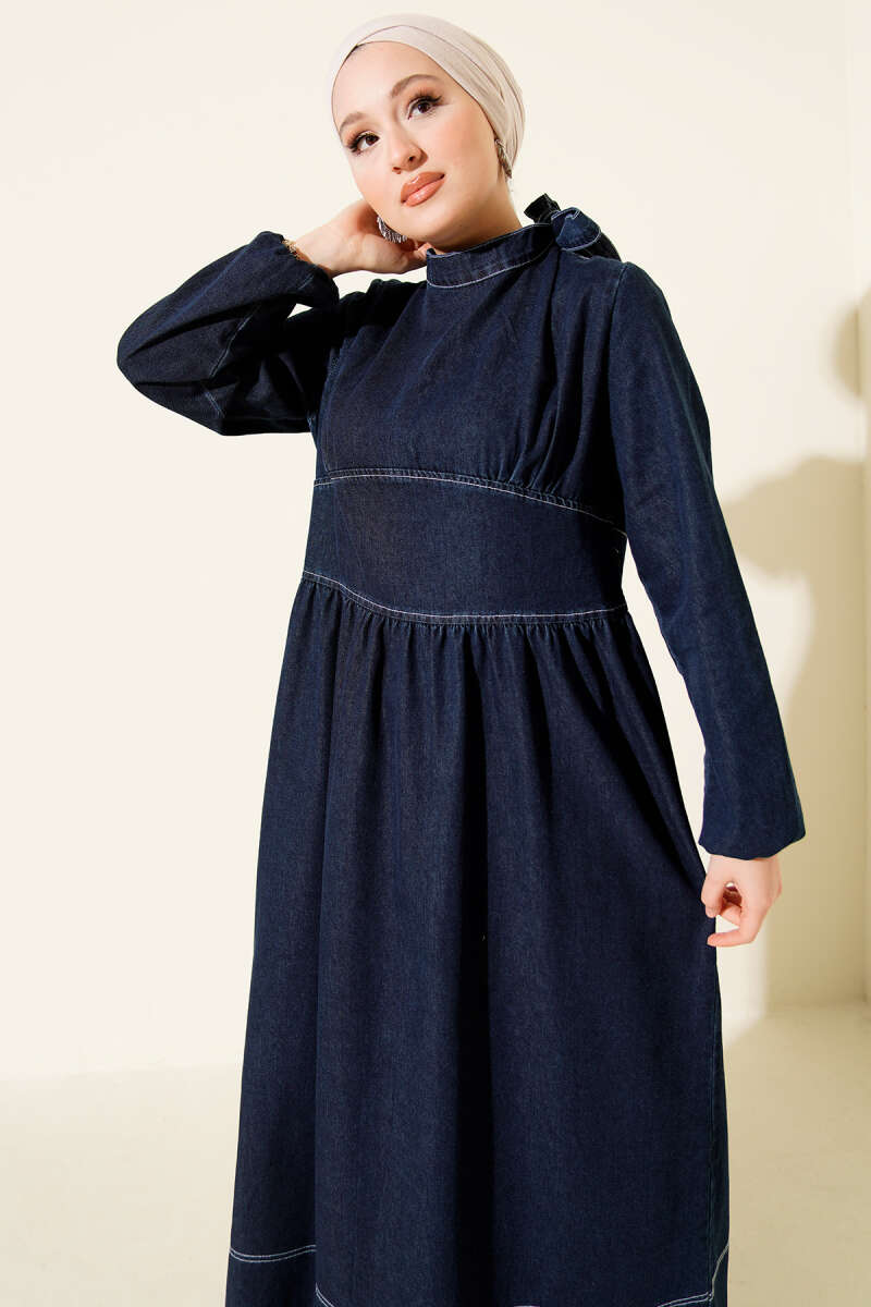 Yakası Yarım Fermuarlı Triko Elbise Lacivert