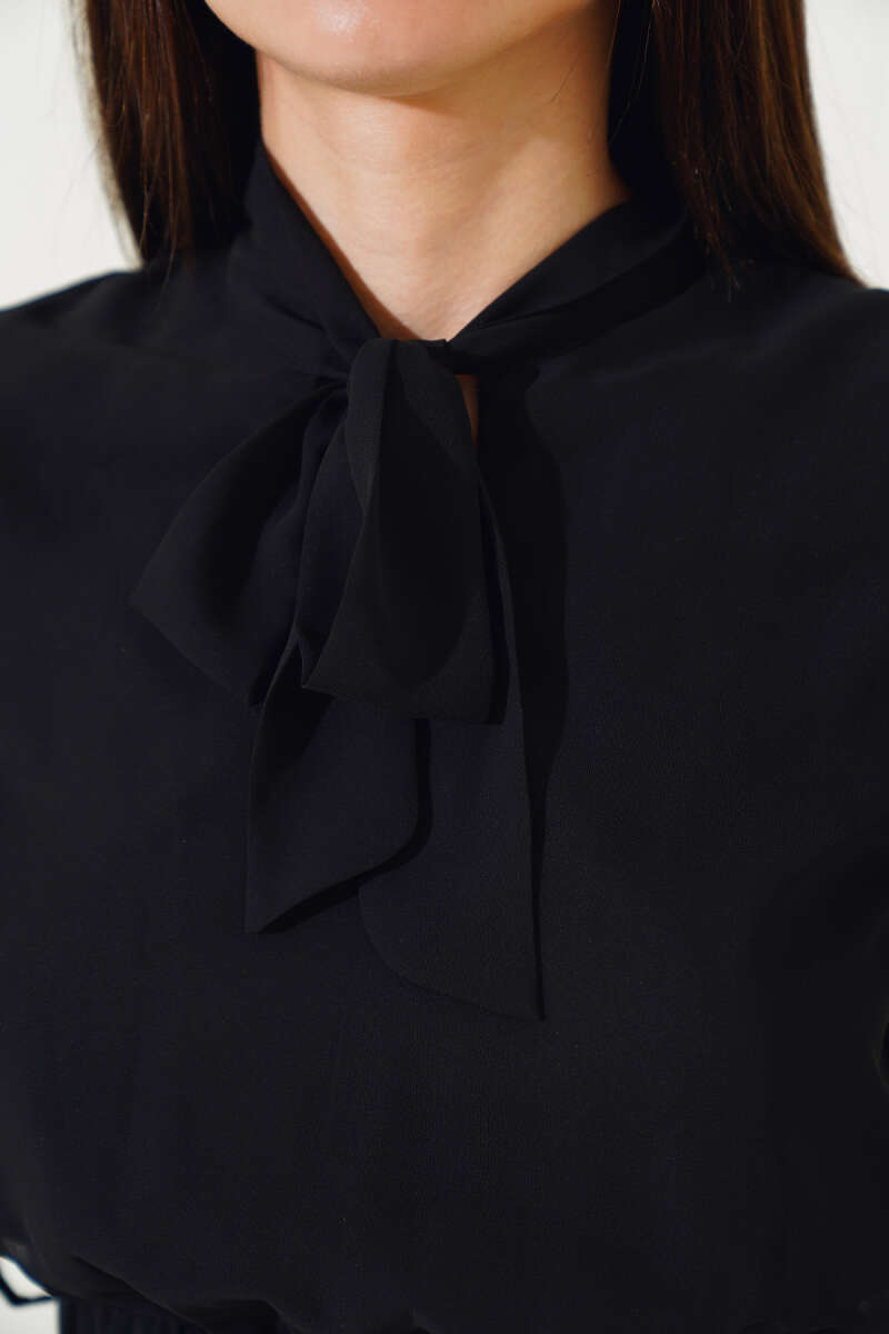 İnci Süslemeli Keten Üçlü Takım Siyah