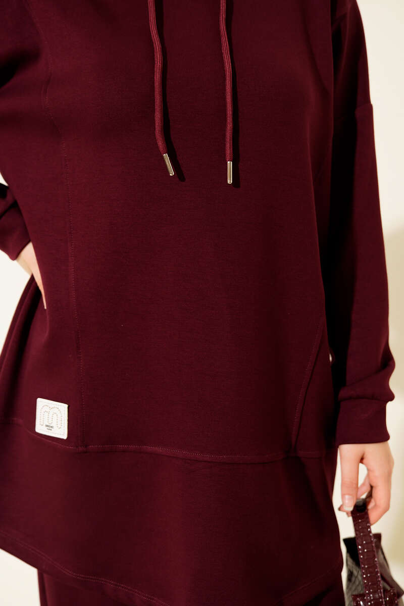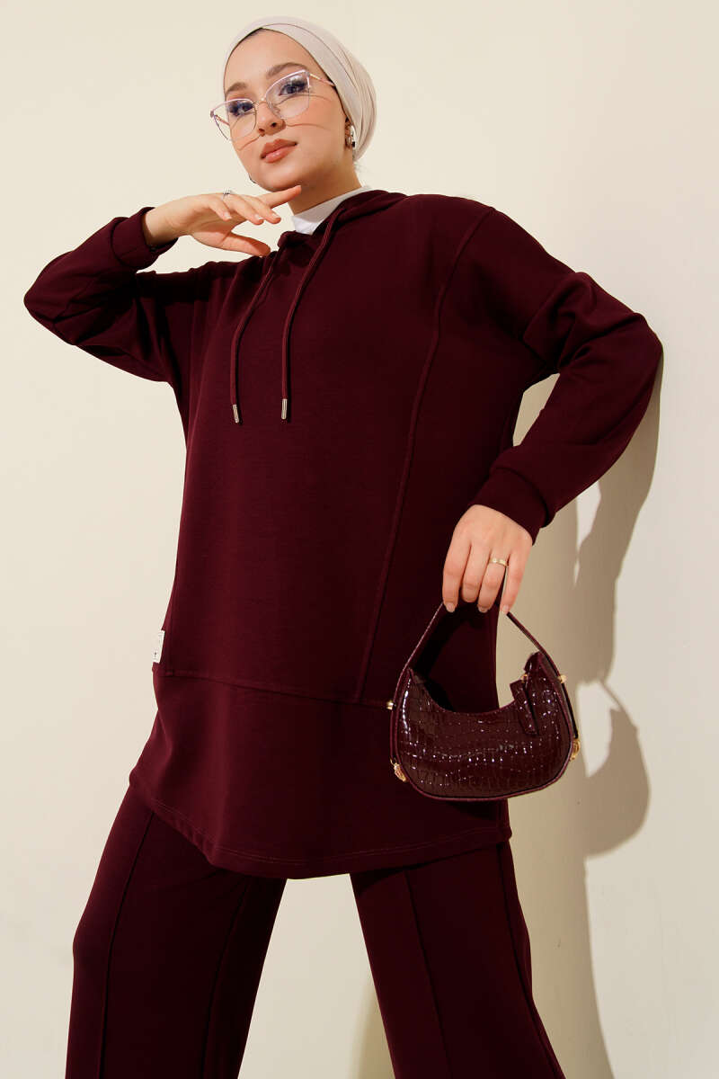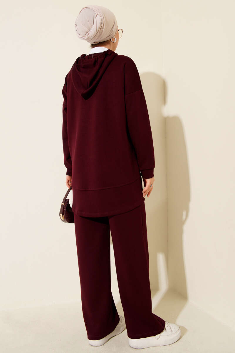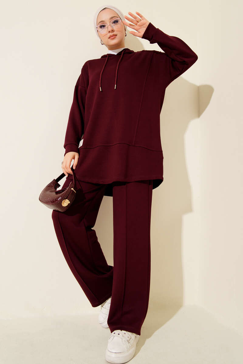 Önü Pileli Kemerli Scuba İkili Takım Bordo