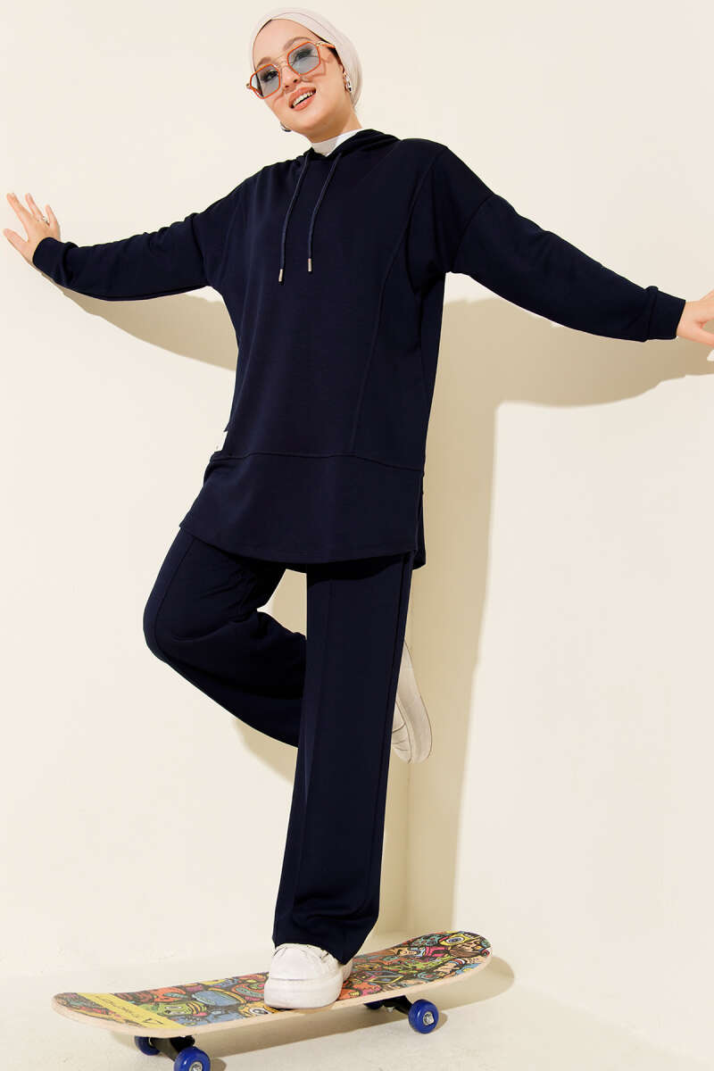 Önü Pileli Kemerli Scuba İkili Takım Siyah