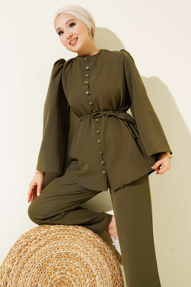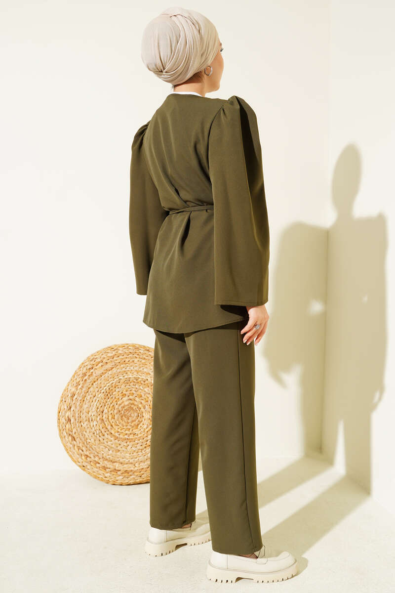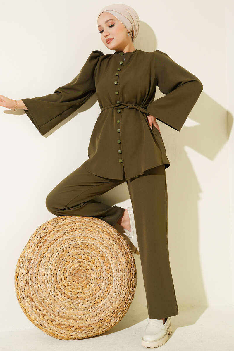Yarım Fermuarlı İki İpli İkili Takım Haki