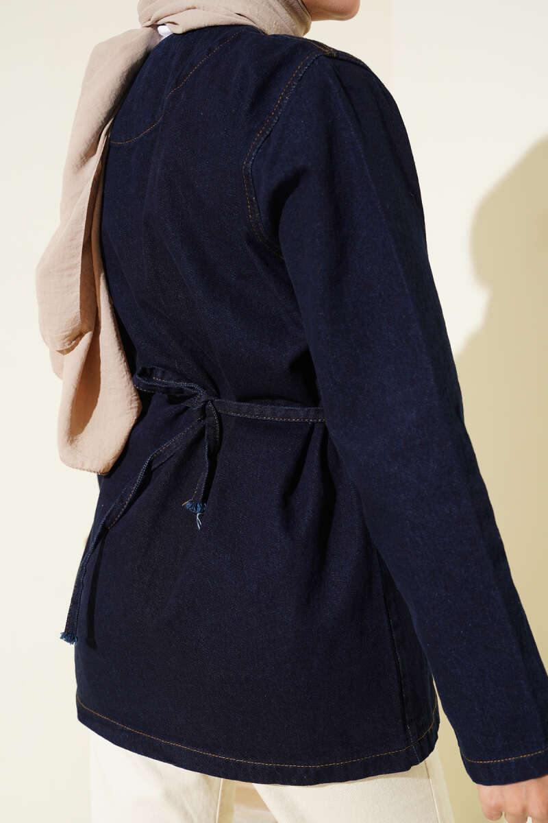 Gömlek Yaka İp Kuşaklı Deri Ceket Haki