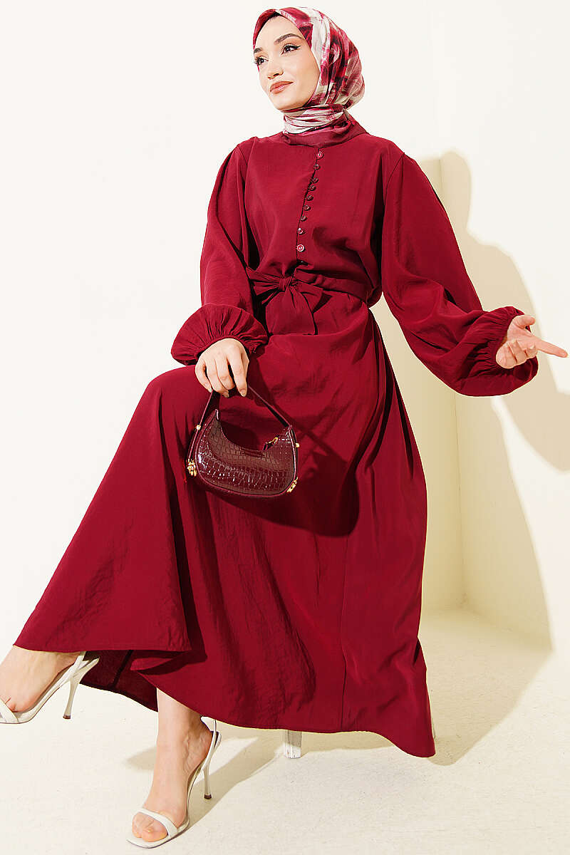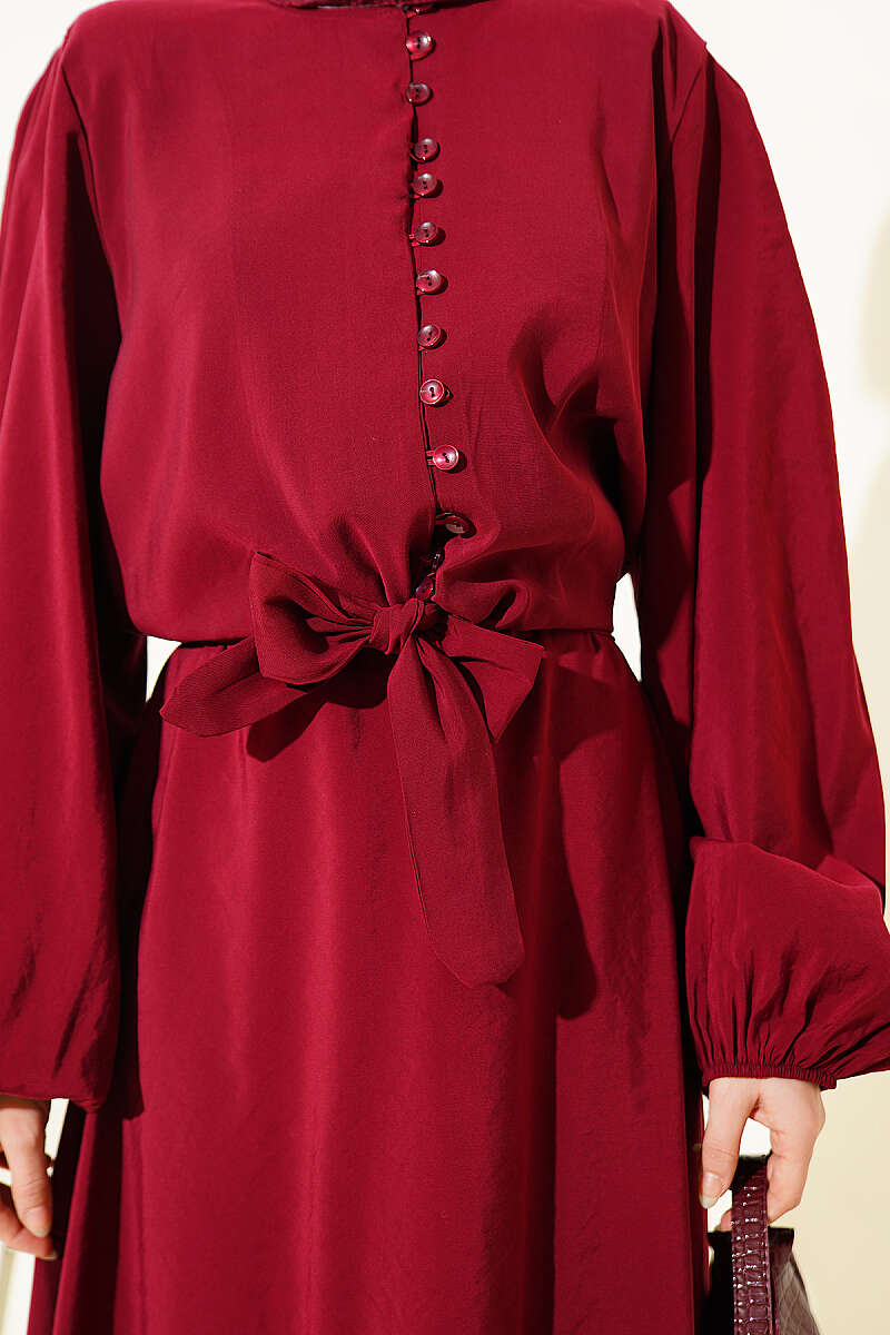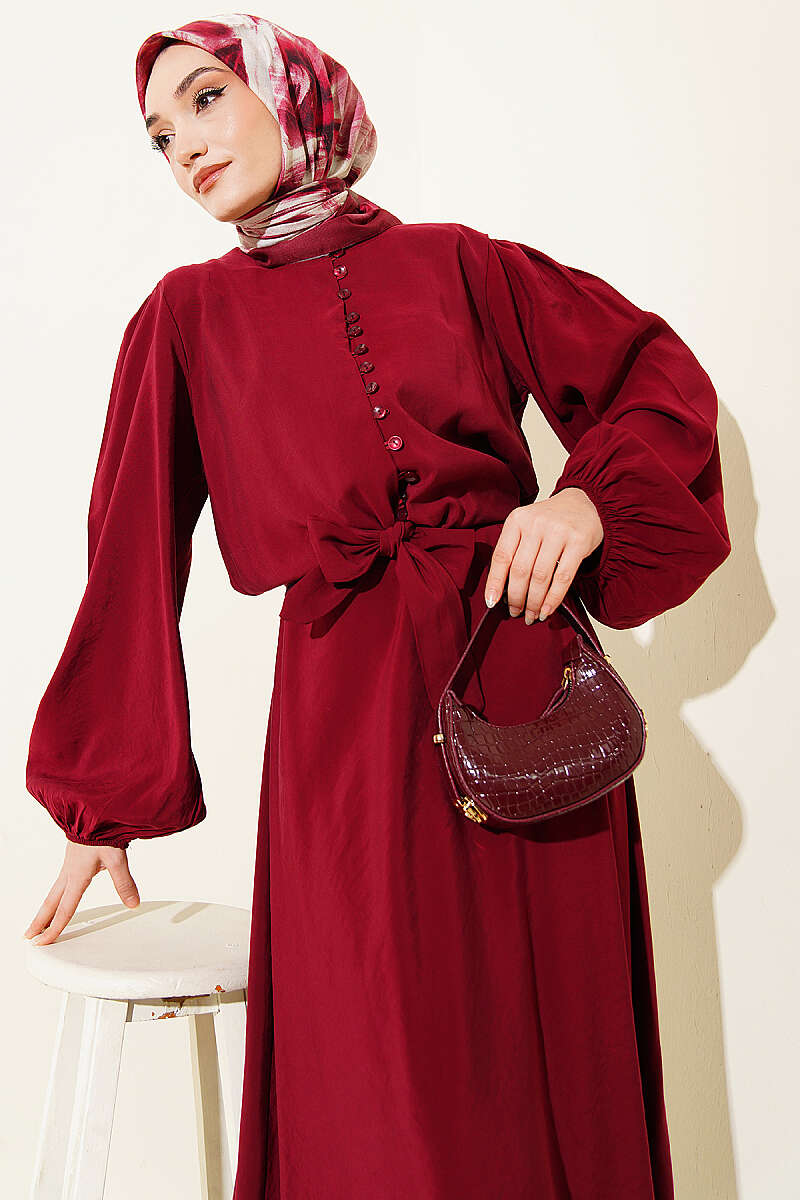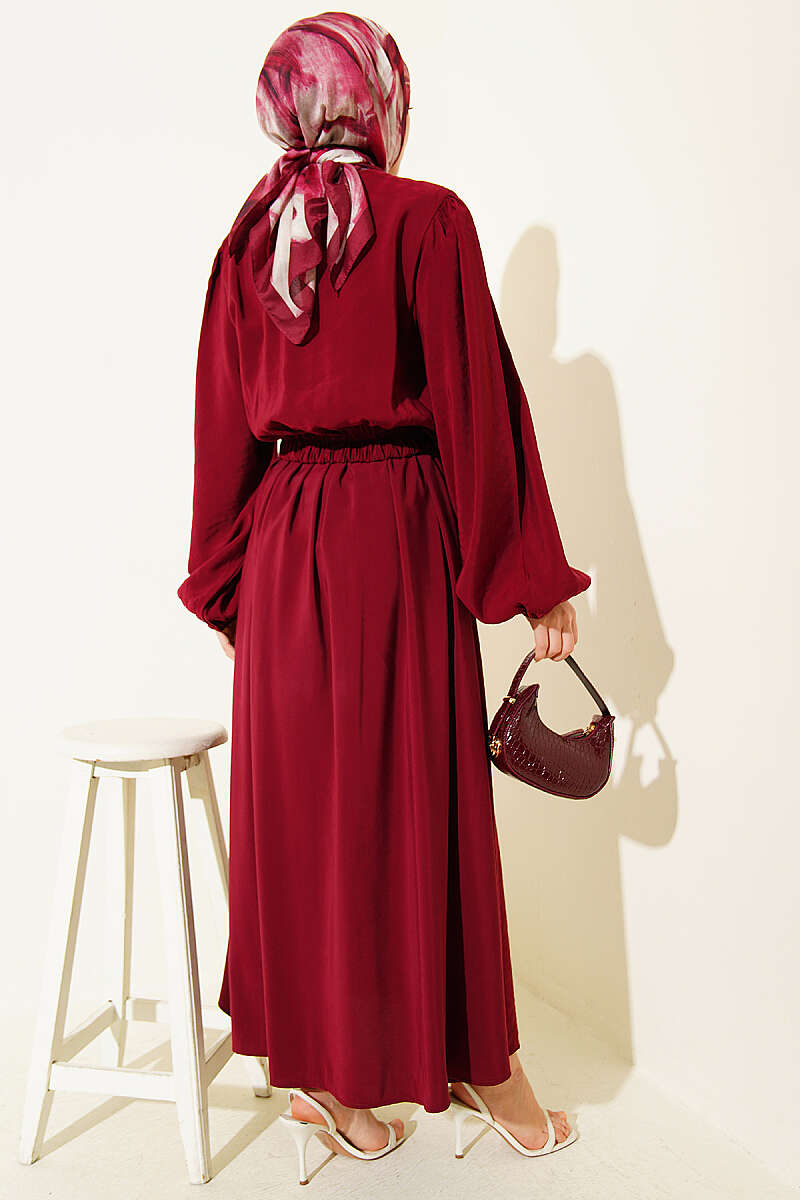 Brit Düğmeli Bluzlu Etekli Modal İkili Takım Bordo