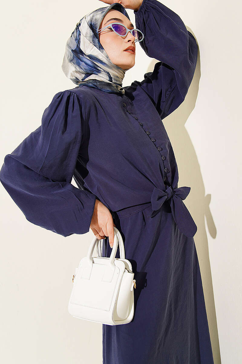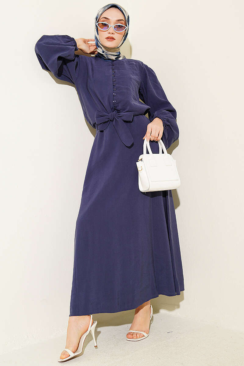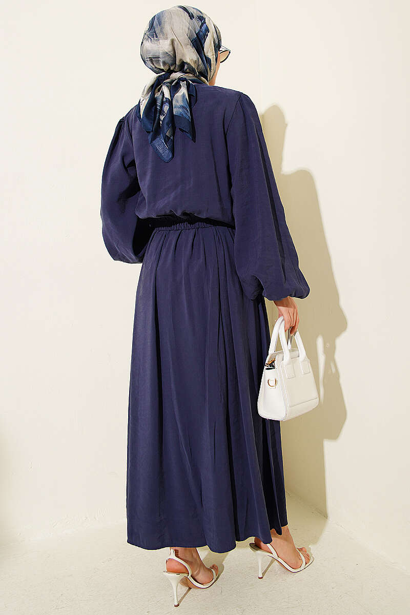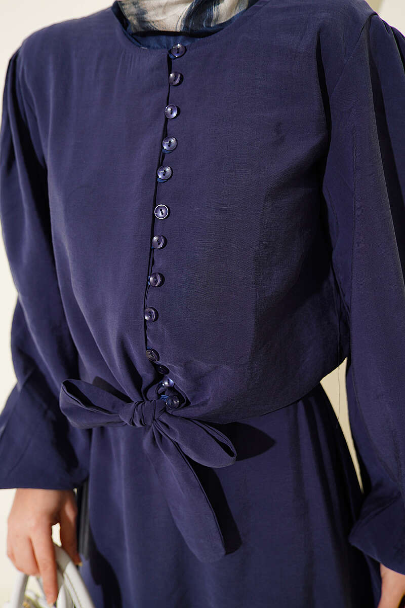 Brit Düğmeli Bluzlu Etekli Modal İkili Takım Lacivert