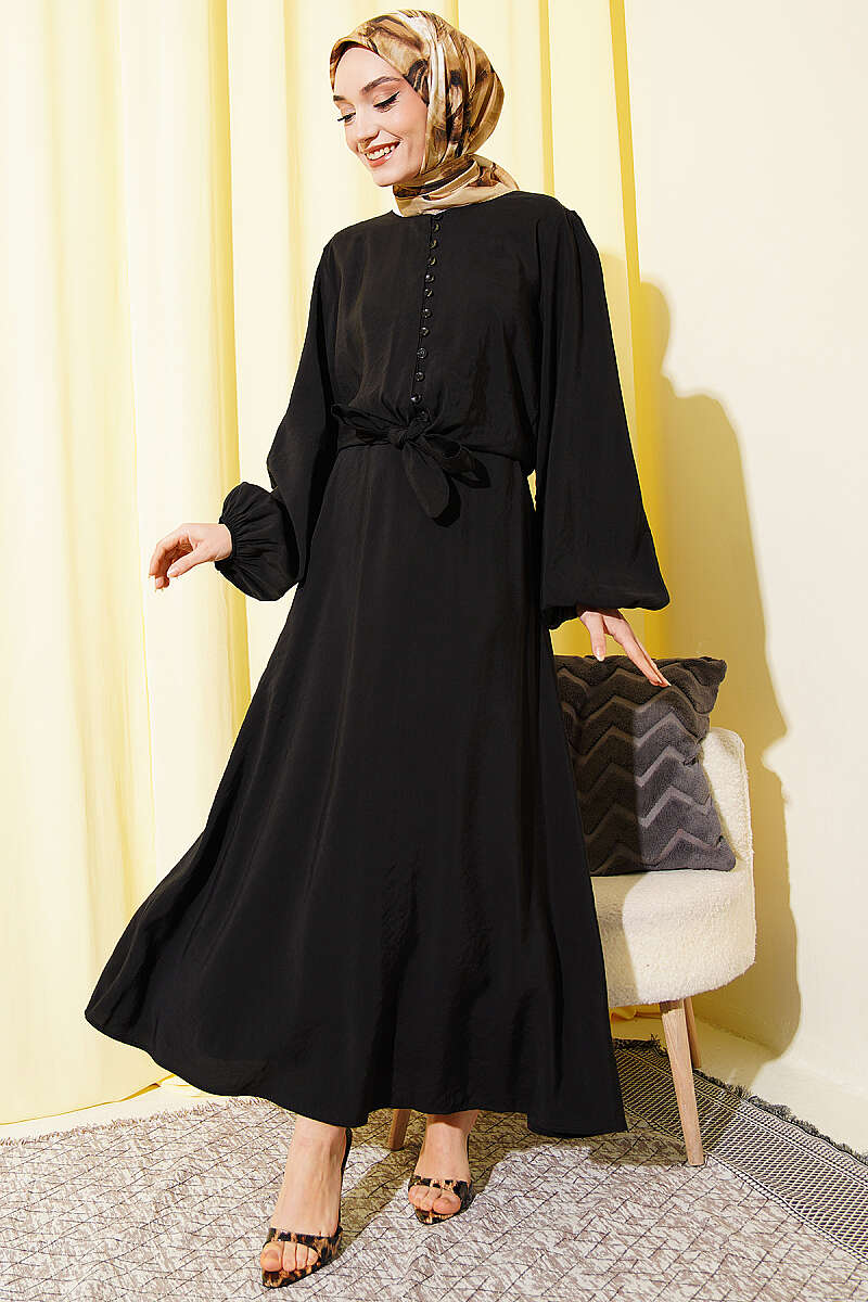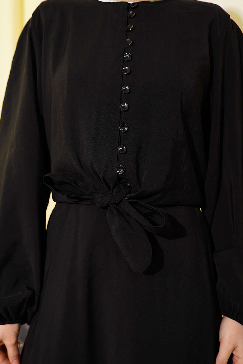 Brit Düğmeli Bluzlu Etekli Modal İkili Takım Siyah