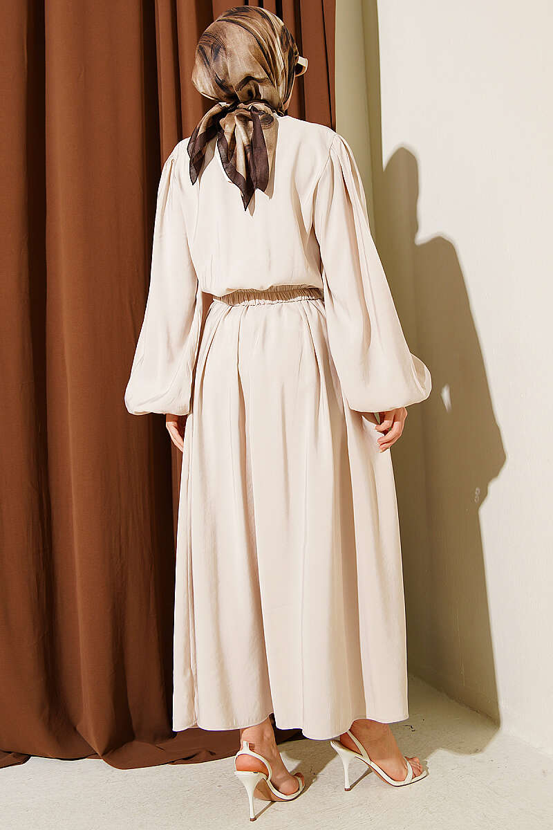 Brit Düğmeli Bluzlu Etekli Modal İkili Takım Taş