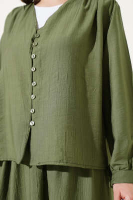 Dikiş Detaylı Basic Triko İkili Takım Haki