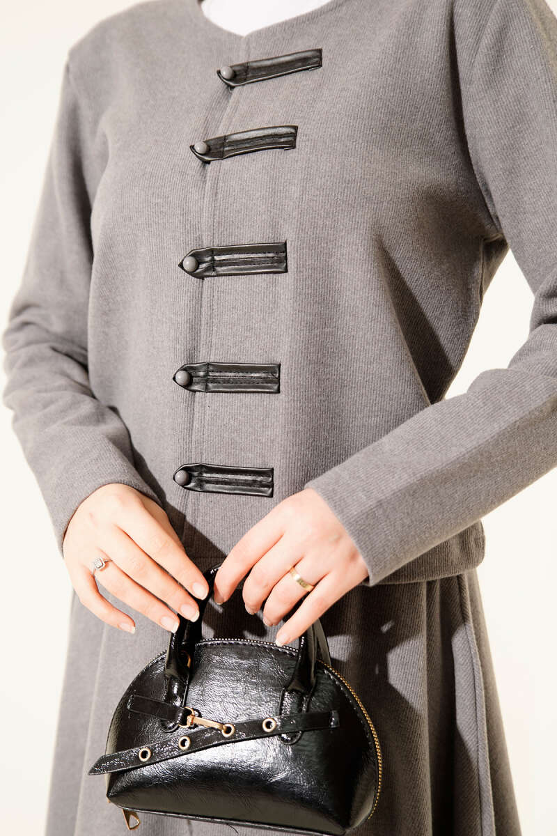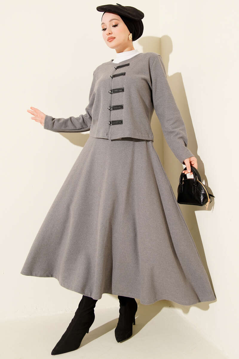 Brit Düğmeli Fitilli Kaşe Etekli İkili Takım Siyah